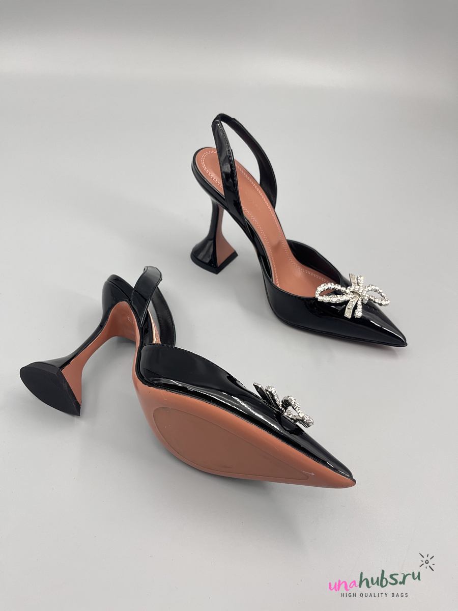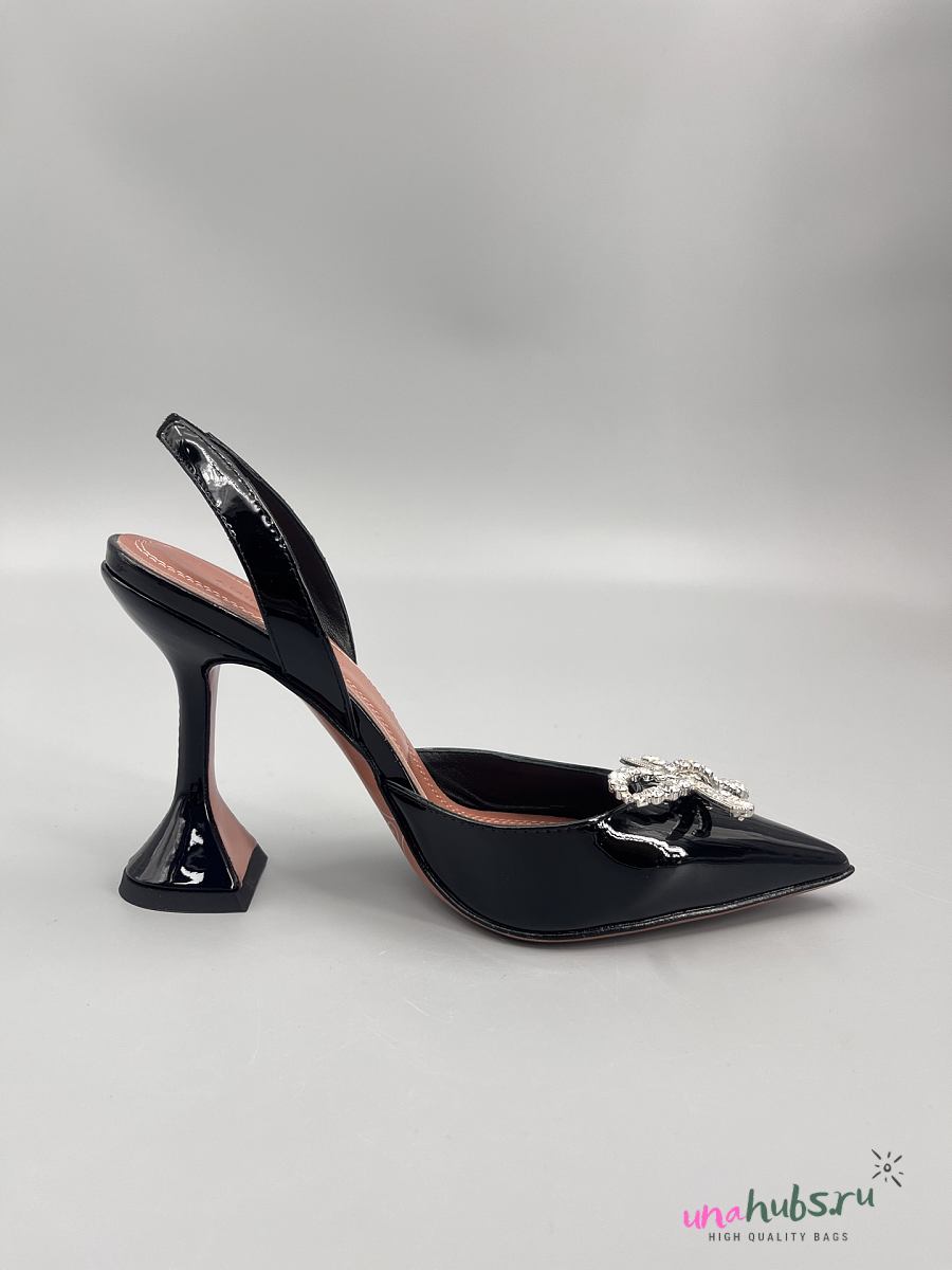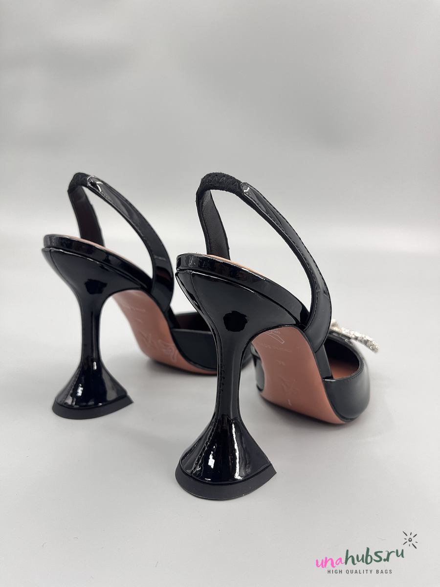 Amina Muaddi Patent Black Rosie Sling Heels 9.5cm