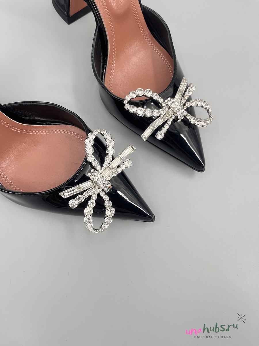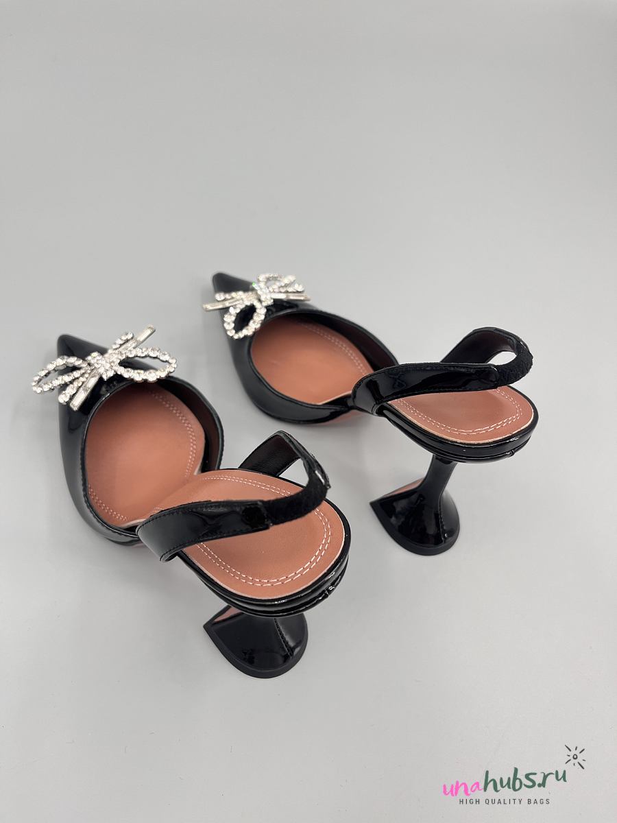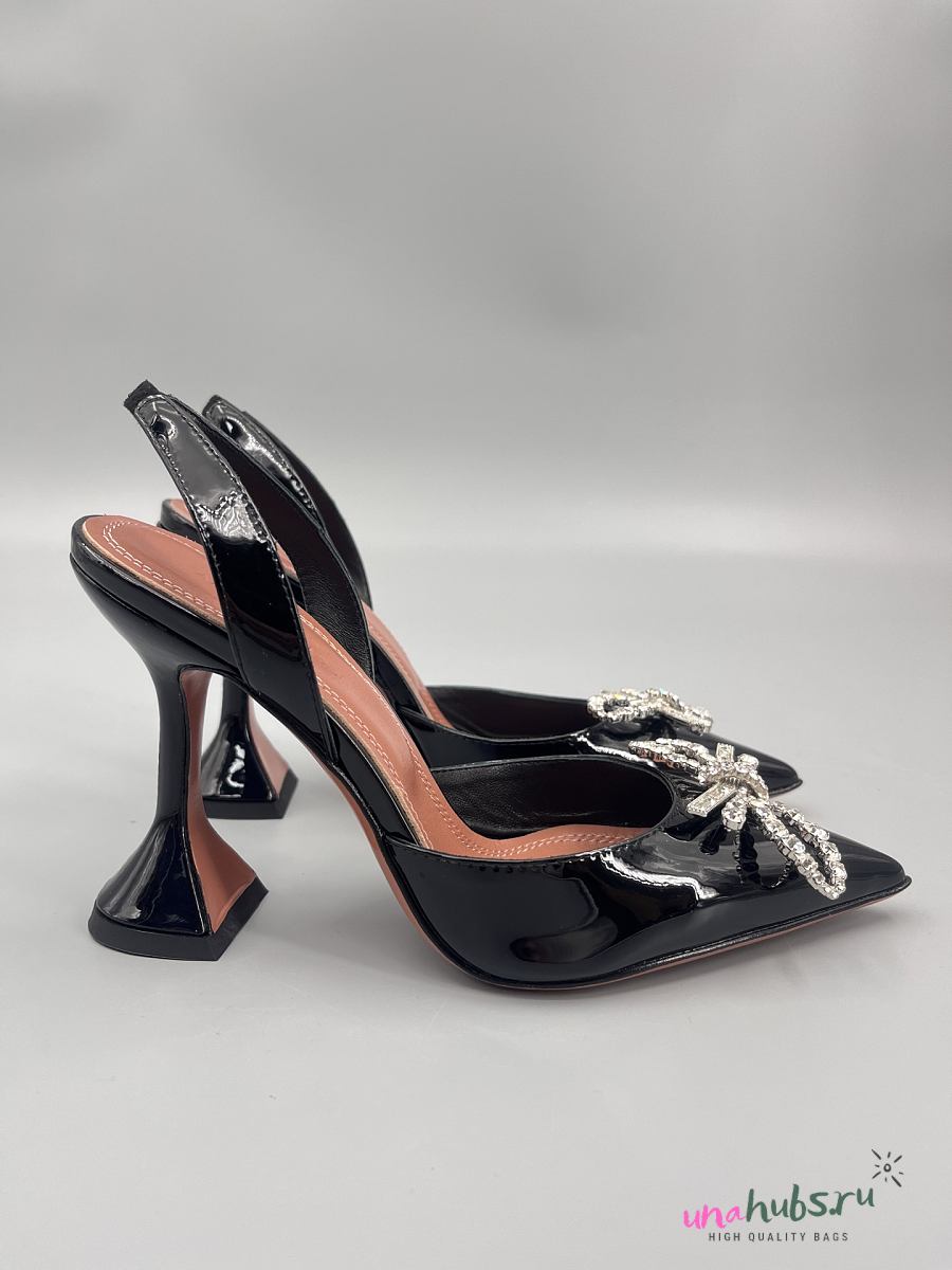 Amina Muaddi Patent Black Rosie Sling Heels 9.5cm