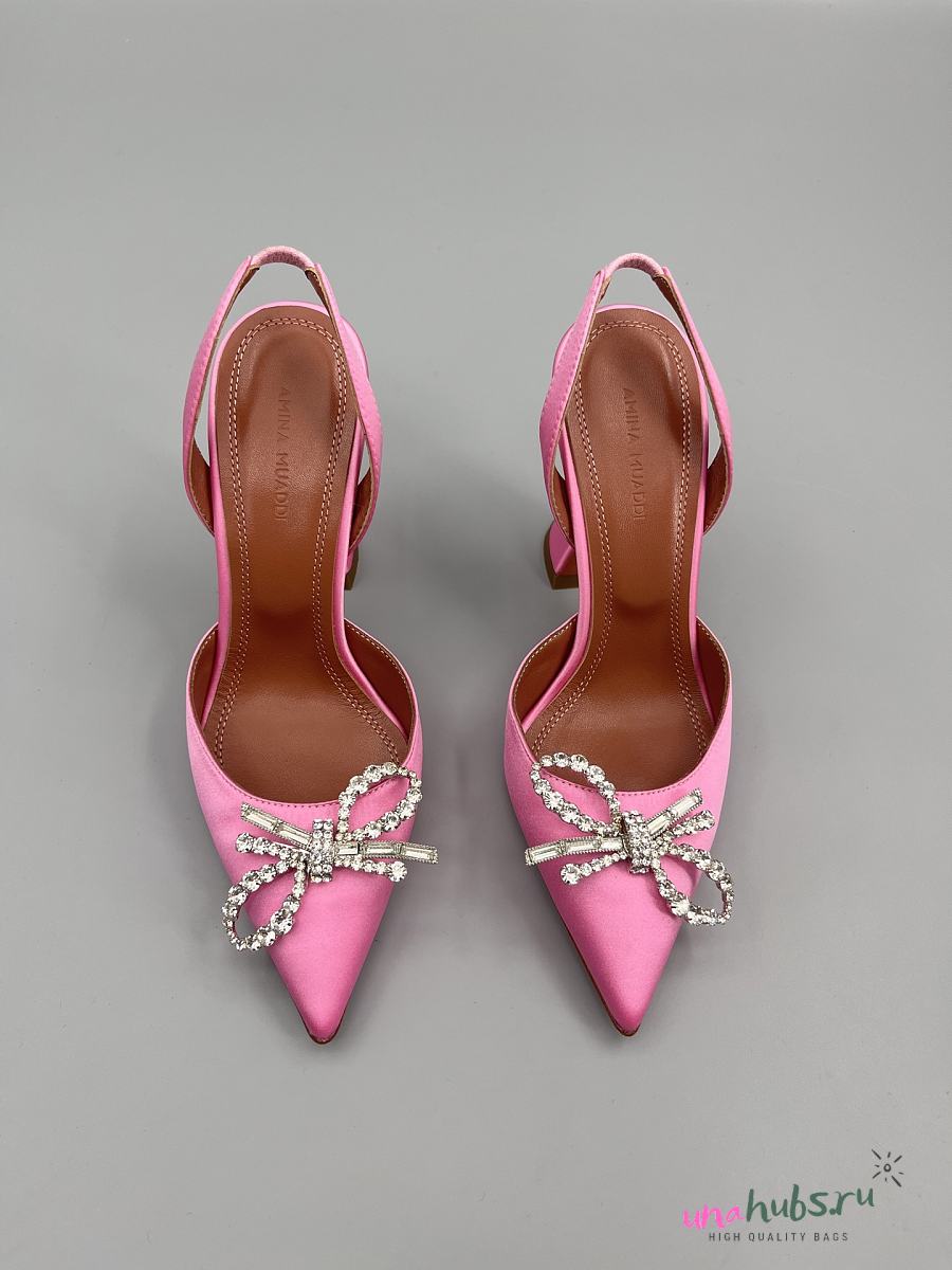 Amina Muaddi Pink Rosie Sling Heels 9.5cm