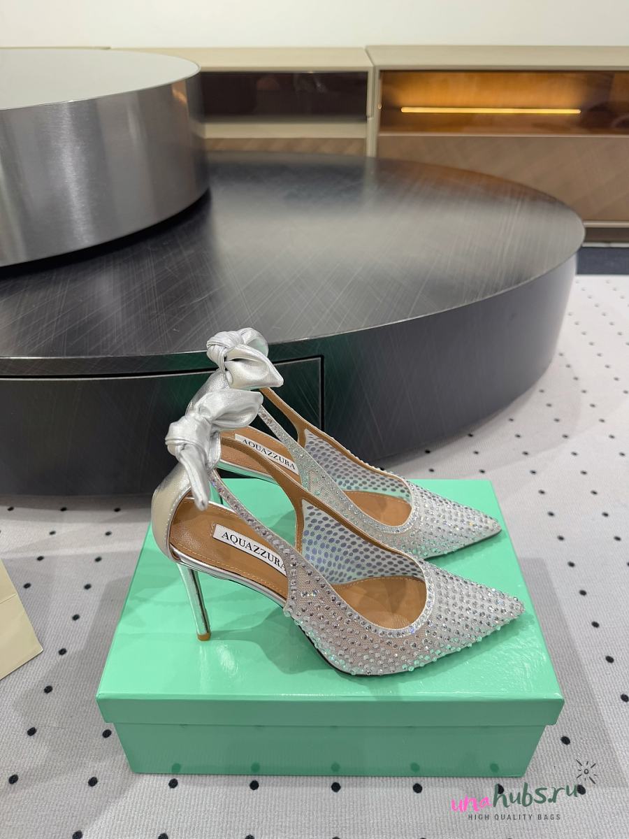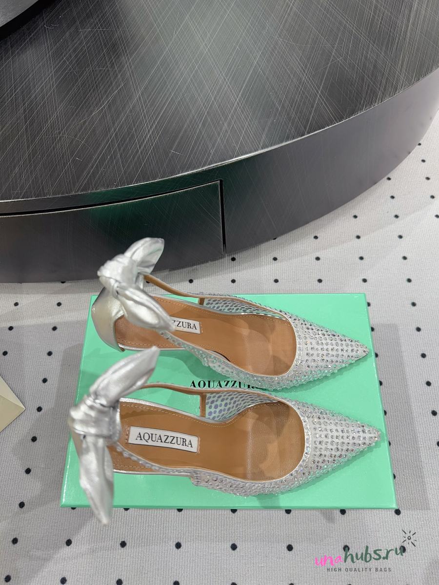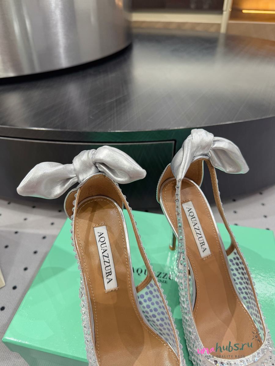 AQUAZZURA Crystal Satin Mesh Bow Pumps Silver