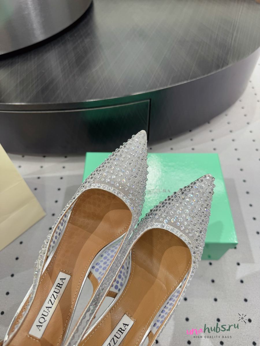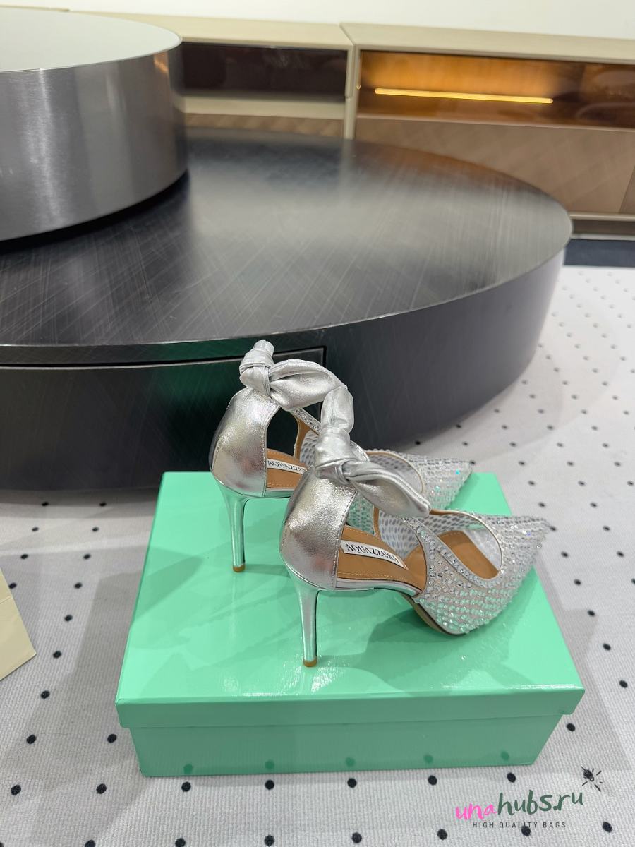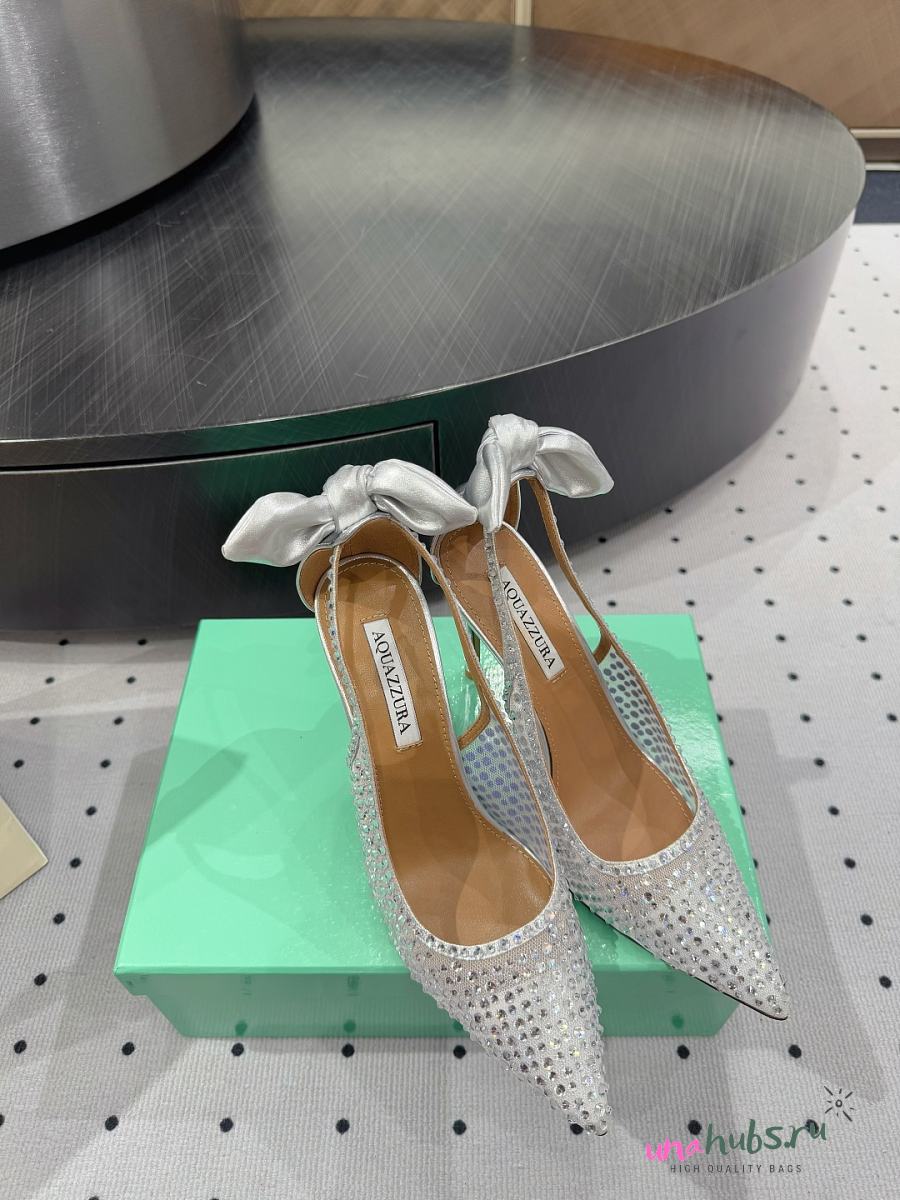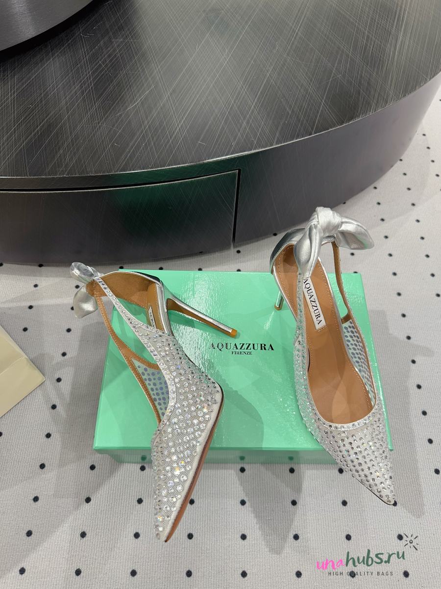 AQUAZZURA Crystal Satin Mesh Bow Pumps Silver