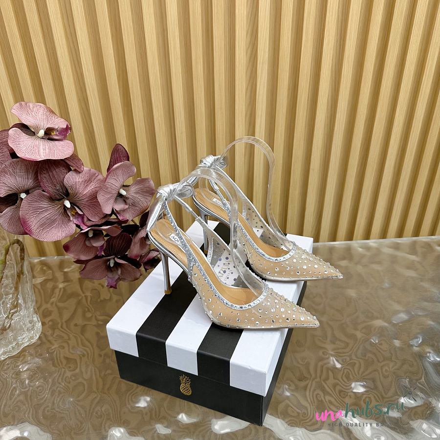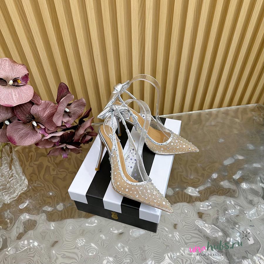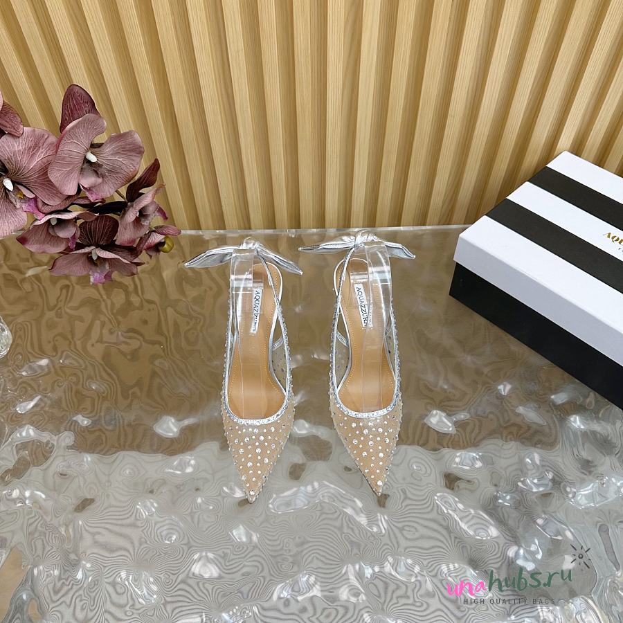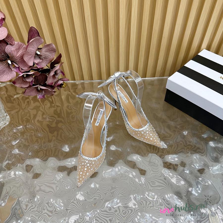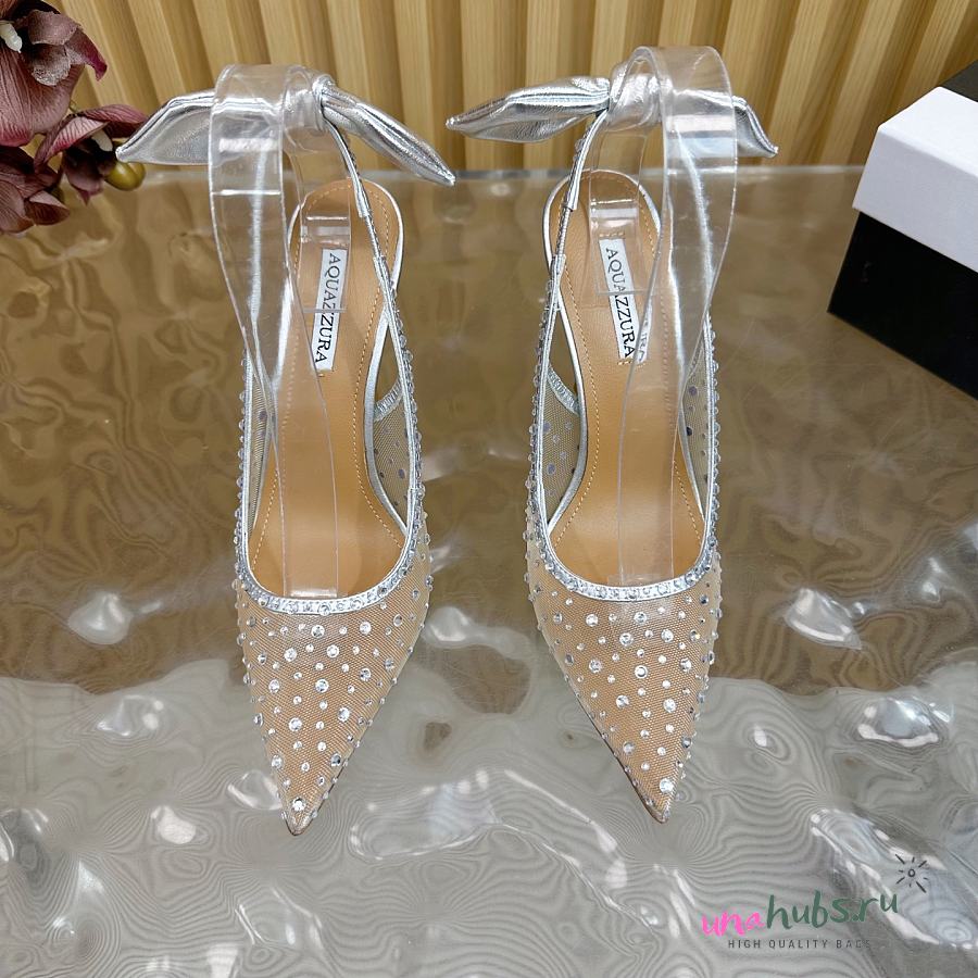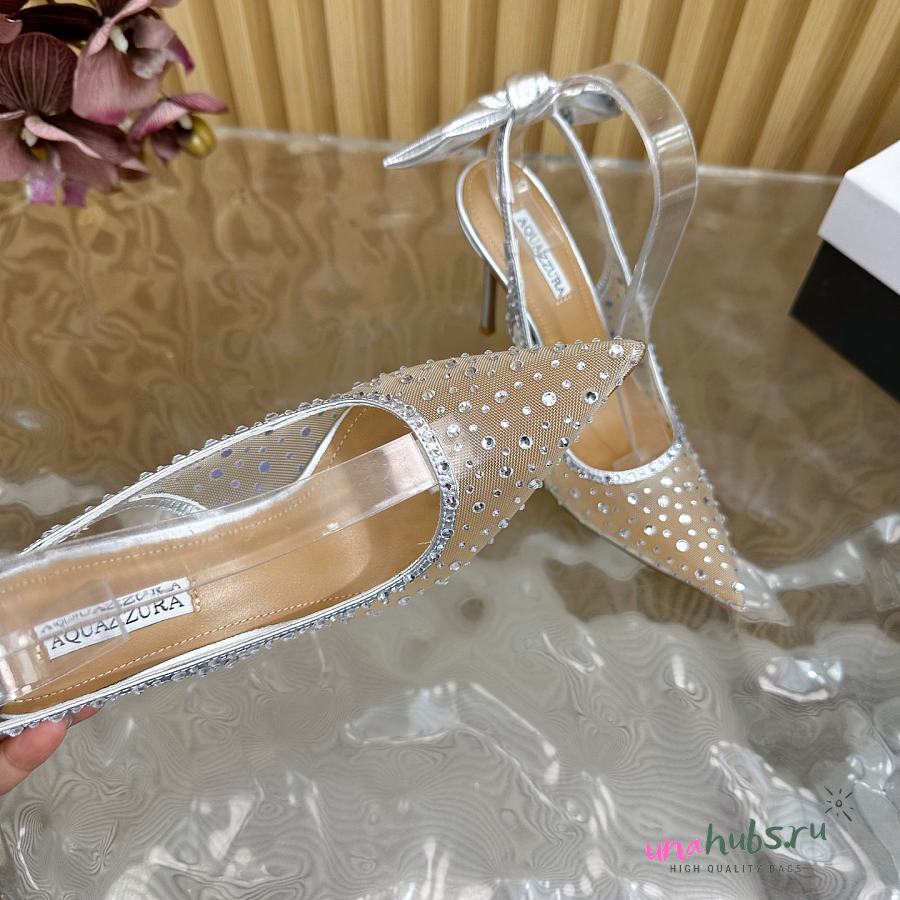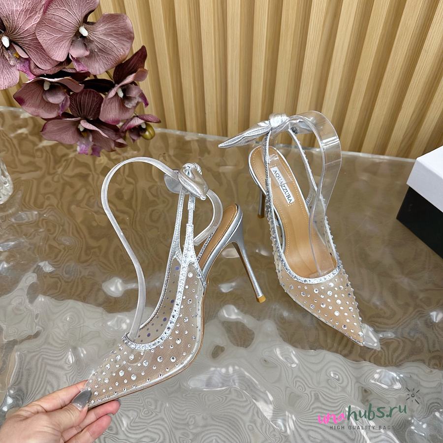 AQUAZZURA Crystal Satin Mesh Bow Slingback Silver