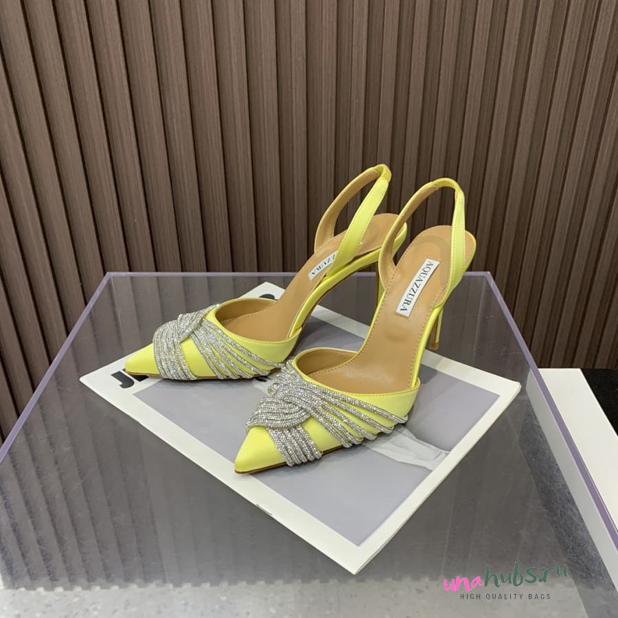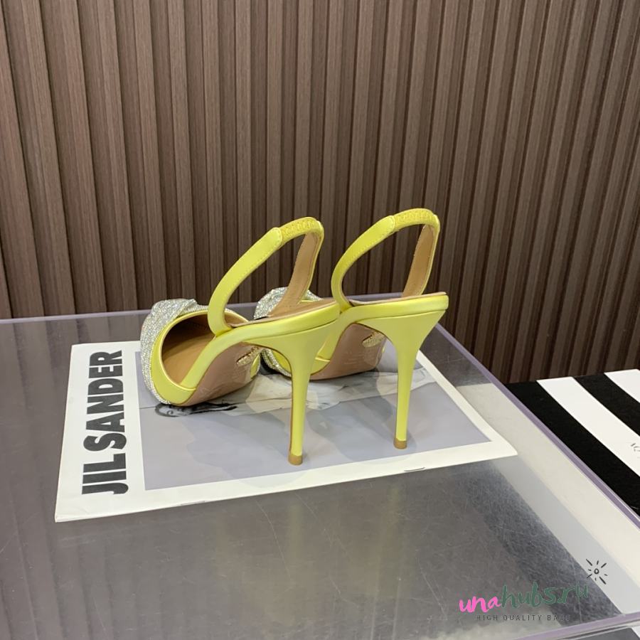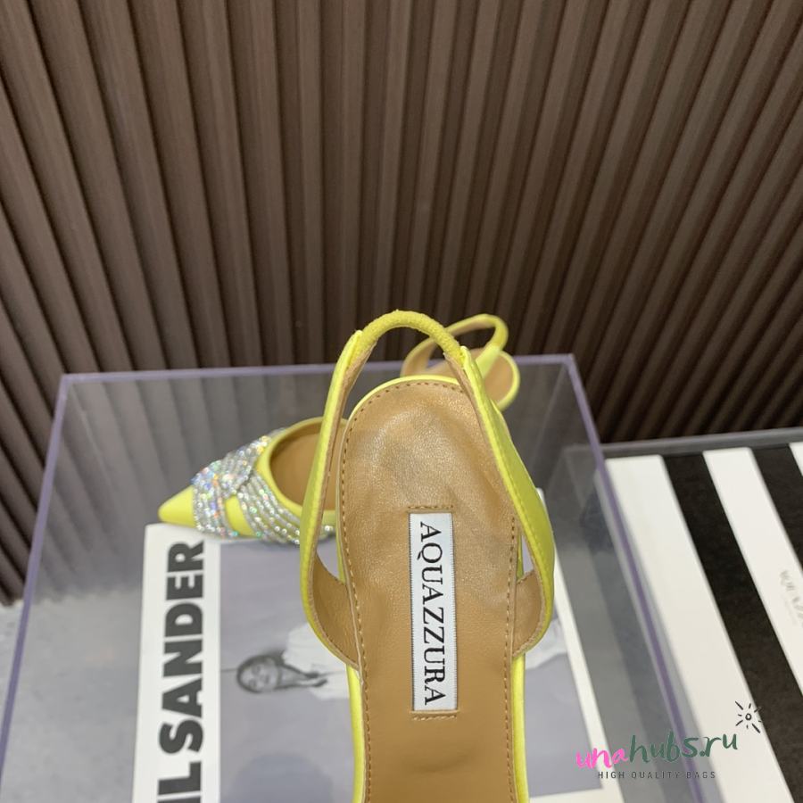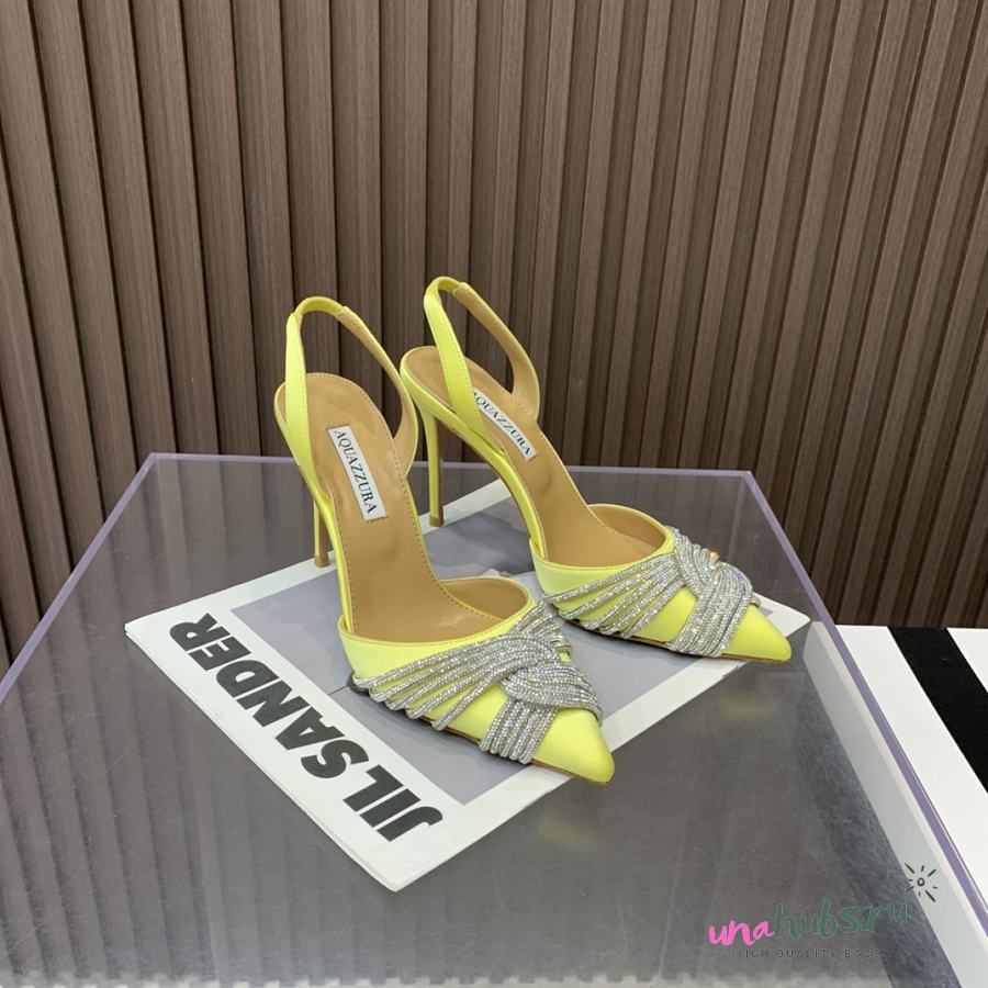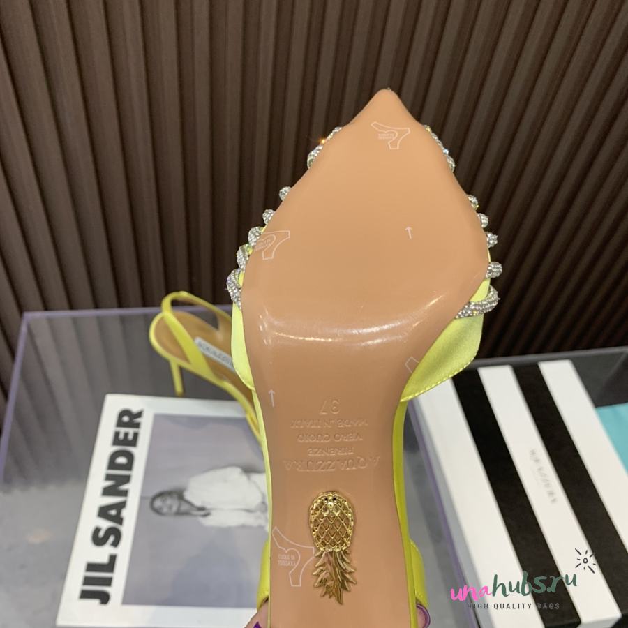Aquazzura Yellow 105mm gatsby satin slingback pumps
