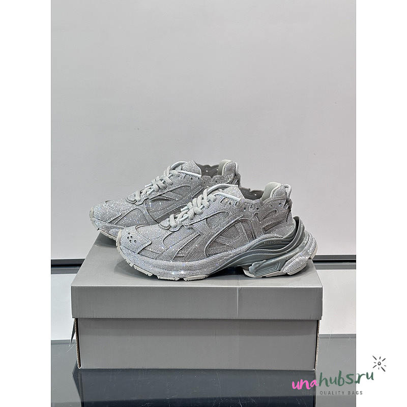 Balenciaga Runner Sneakers In Silver Glitter Mesh And Nylon