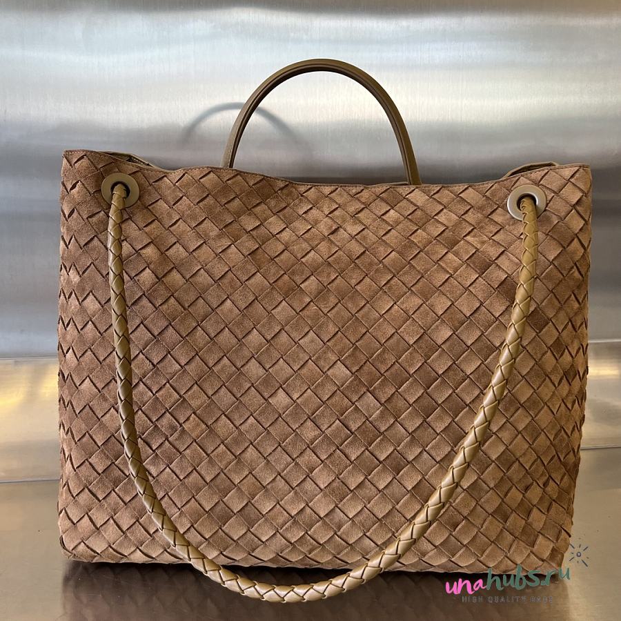 Bottega Large Veneta Andiamo Brown Suede Tote - 43x33x20cm