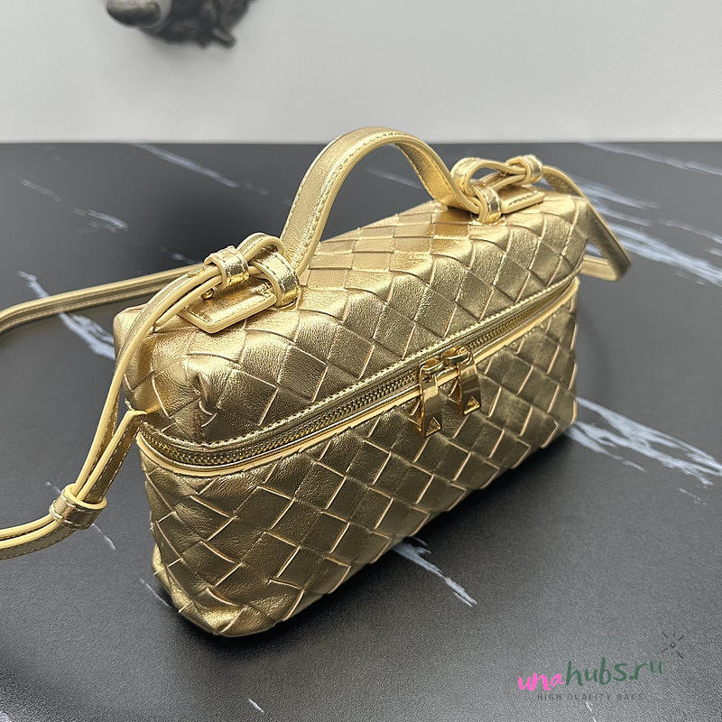 Bottega Veneta Bang Bang Intrecciato Vanity Case Gold 22x12.5x5cm