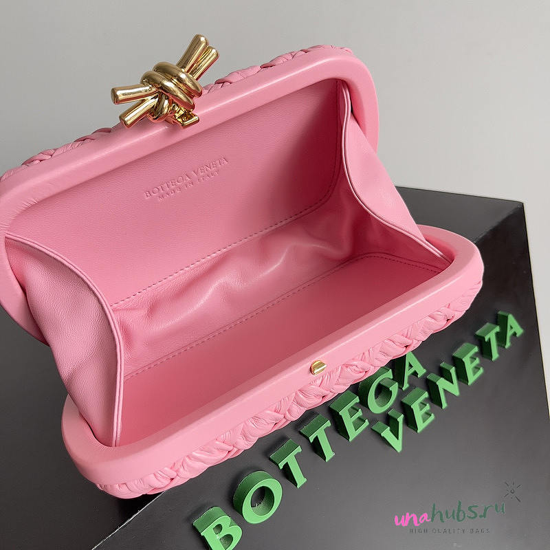 Bottega Veneta Knot Pleated Leather Clutch Bag In Pink 20.5x6x12cm