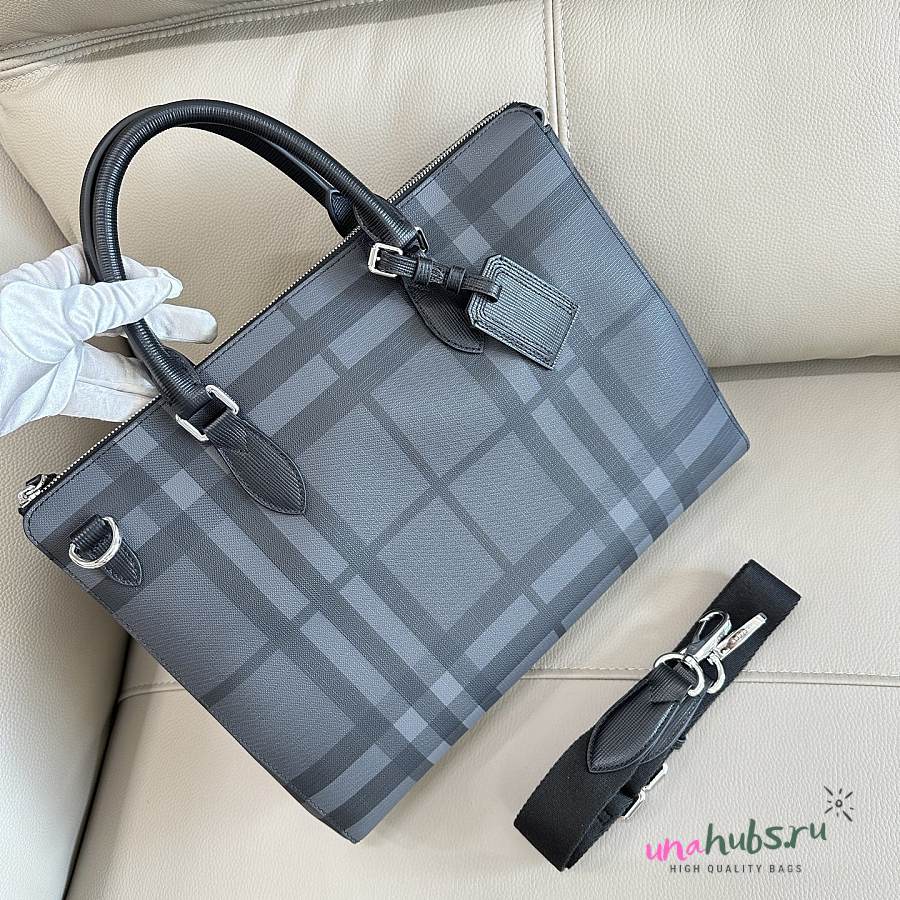 Burberry Black/Smoke Check Coated Canvas Laptop Bag 37x9x27cm