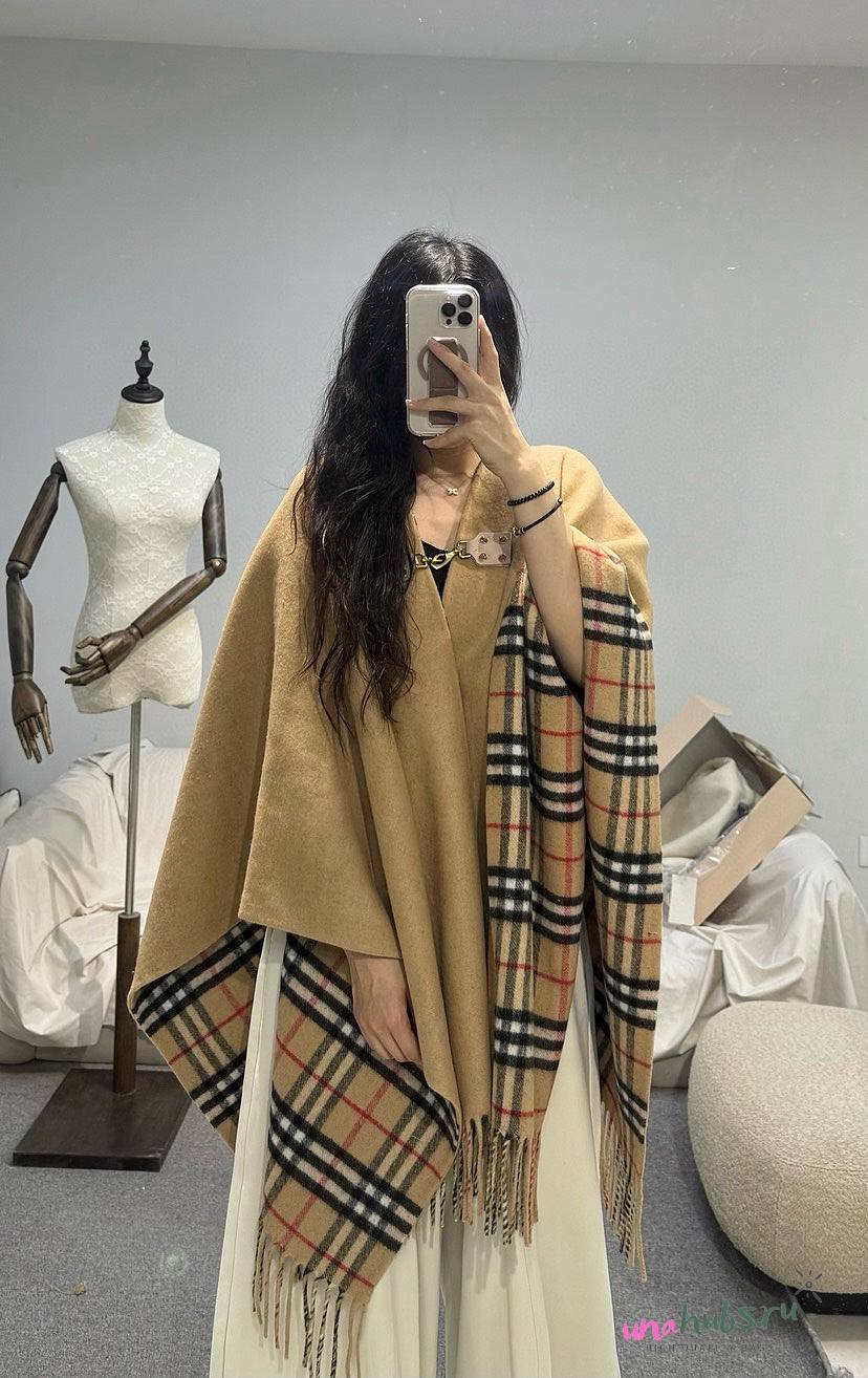 Burberry Reversible Check Wool Beige Cape 140x140cm