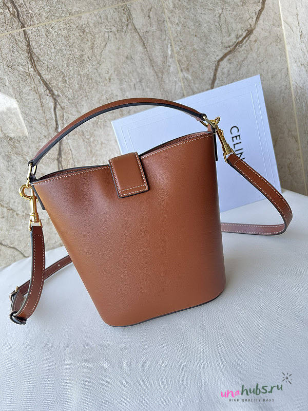 Celine Triomphe Leather Bucket Bag Cognac 16x19x12cm
