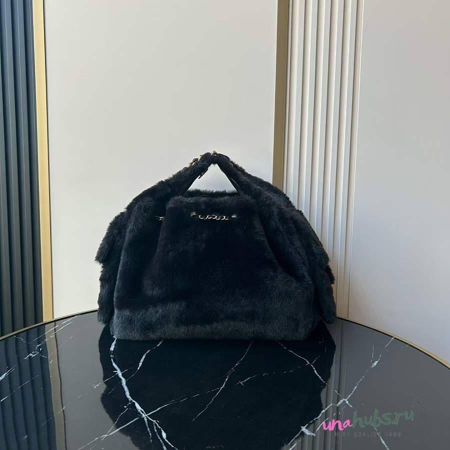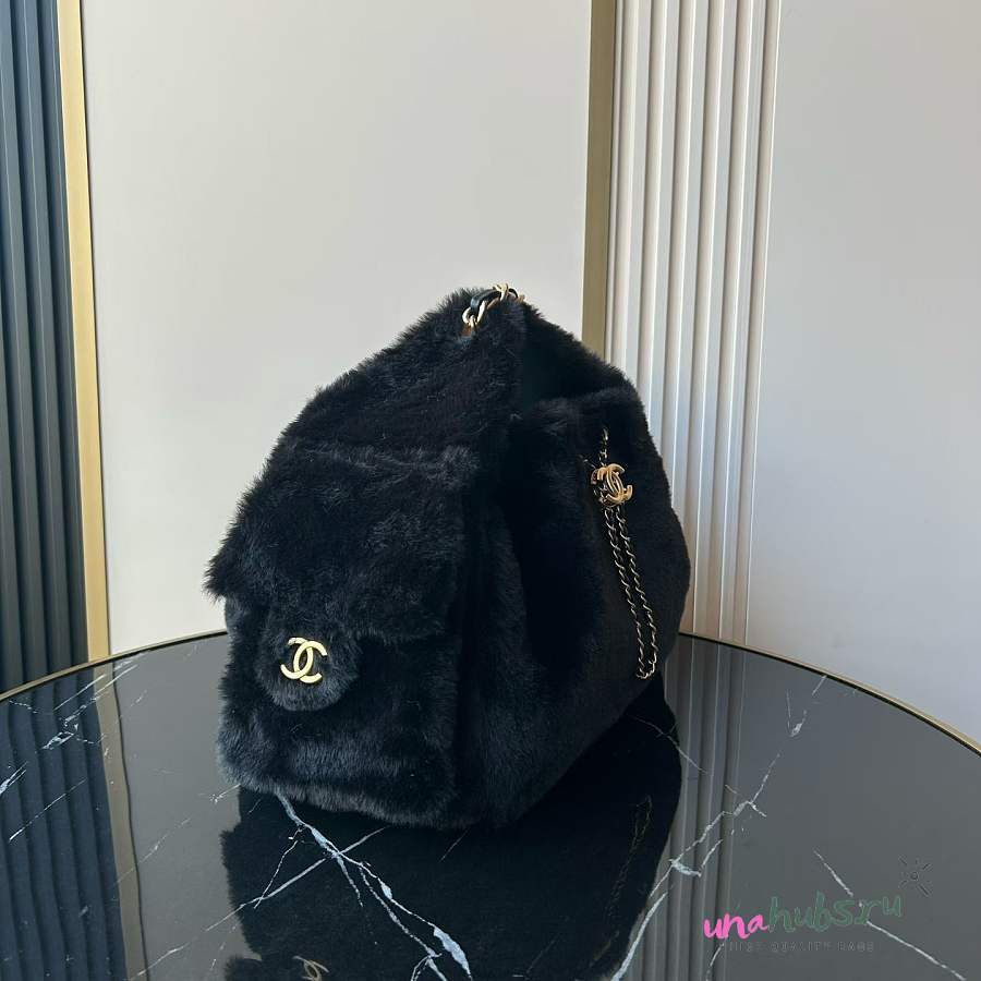 Chanel 25 Handbag Black Fur 30x26x14cm