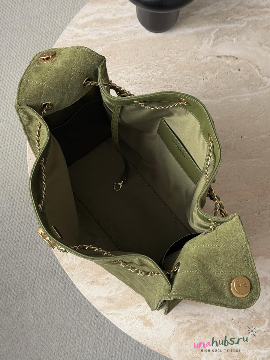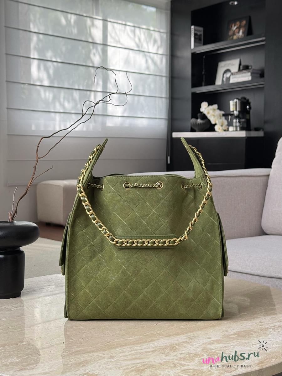 Chanel 25 Handbag Green Suede 40x30x15cm