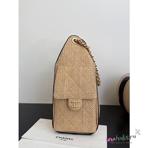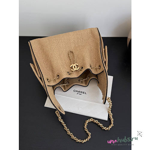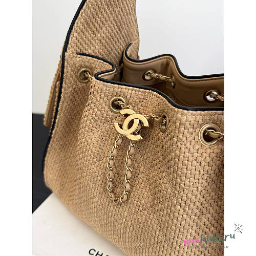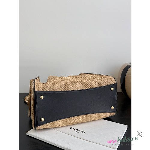 Chanel 25 Handbag Raffia Beige 30x26x14cm