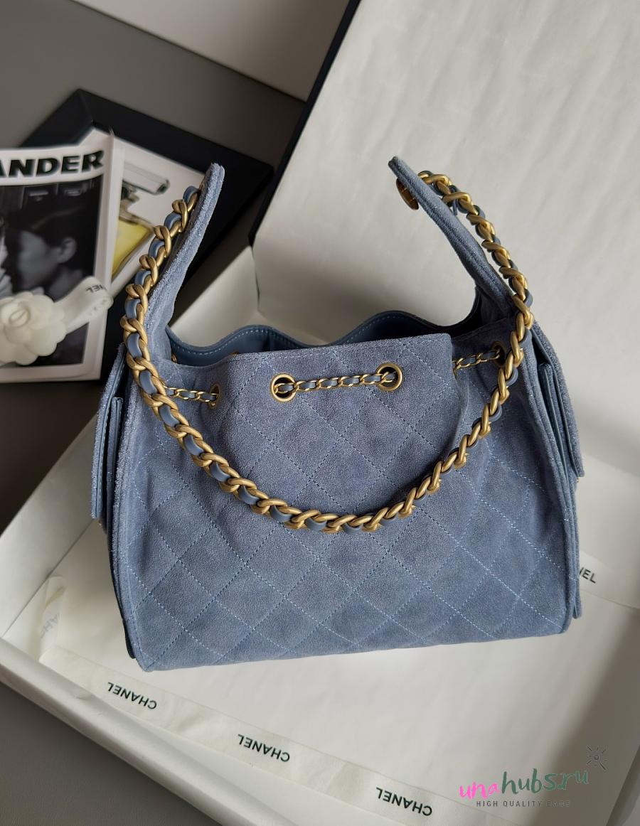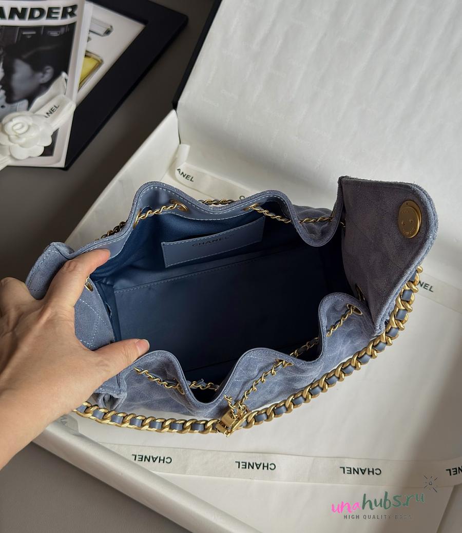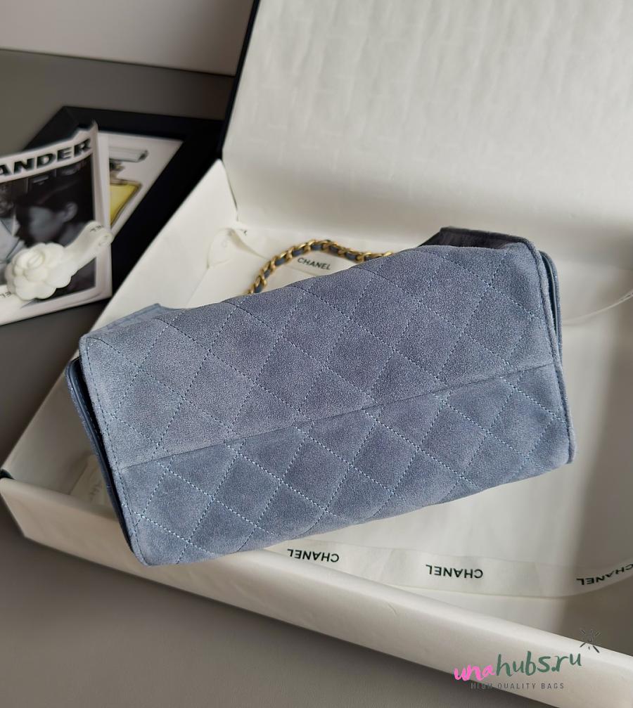Chanel 25 Small Handbag Suede Gold Blue 30x26x14cm