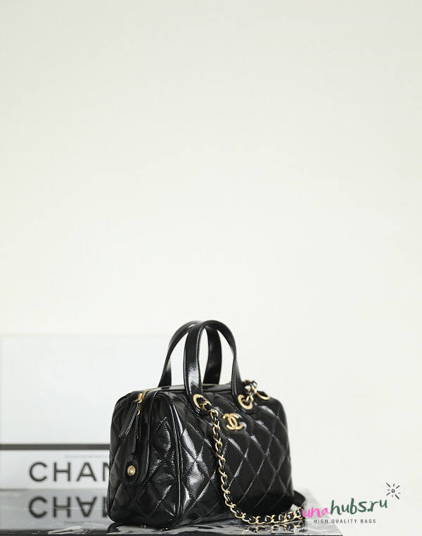 Chanel 25A Black Bolsa CC Bowling Bag 21x17x13cm