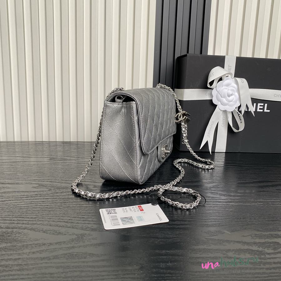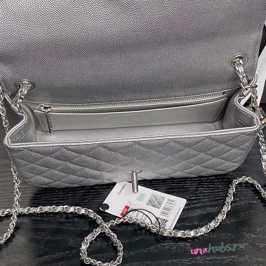 Chanel 25B Flap Bag Silver Caviar 23.5x7x14.5cm
