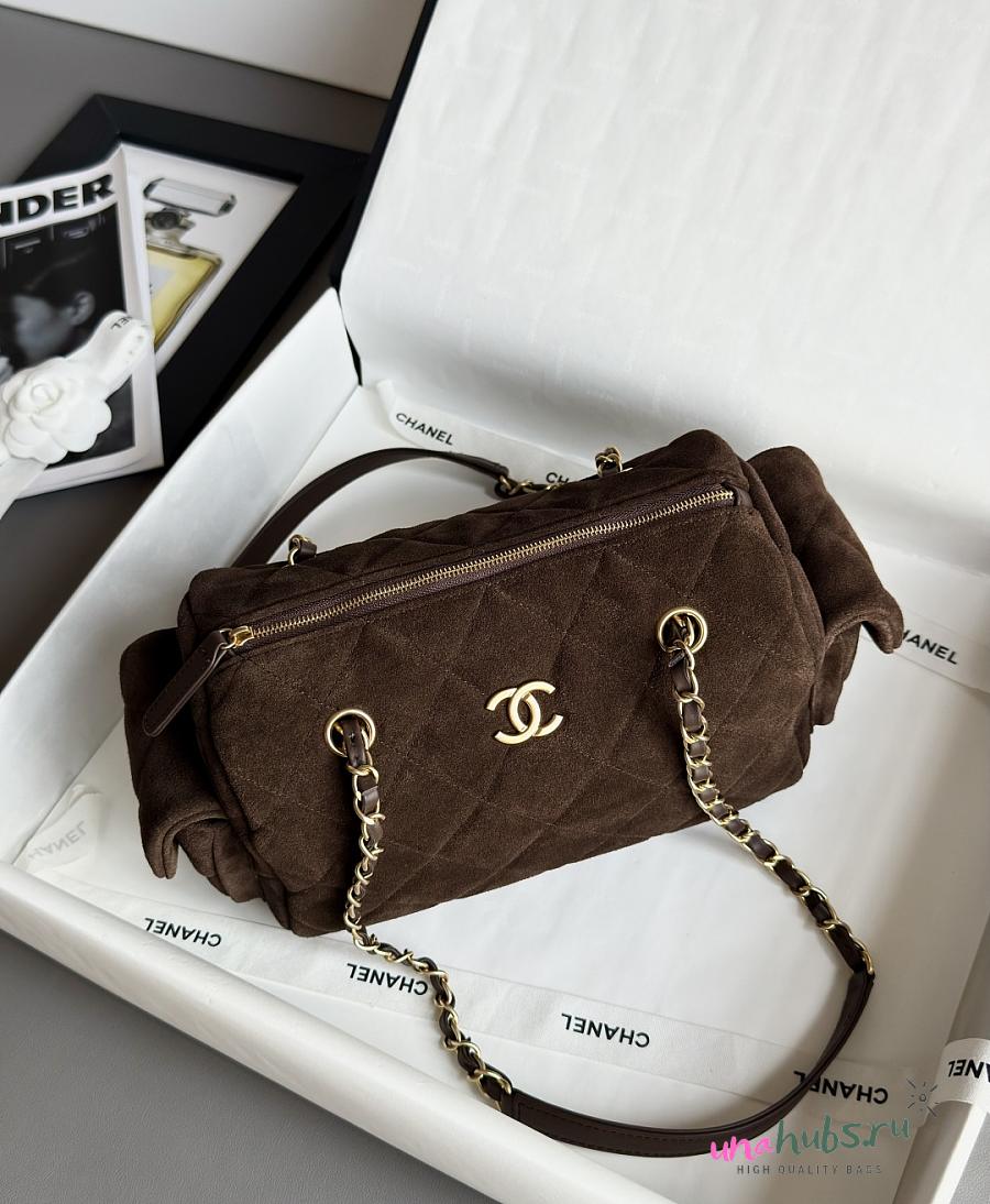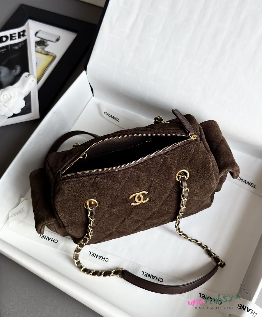 Chanel 25k Bag Brown Suede 24x15.5x11.5cm