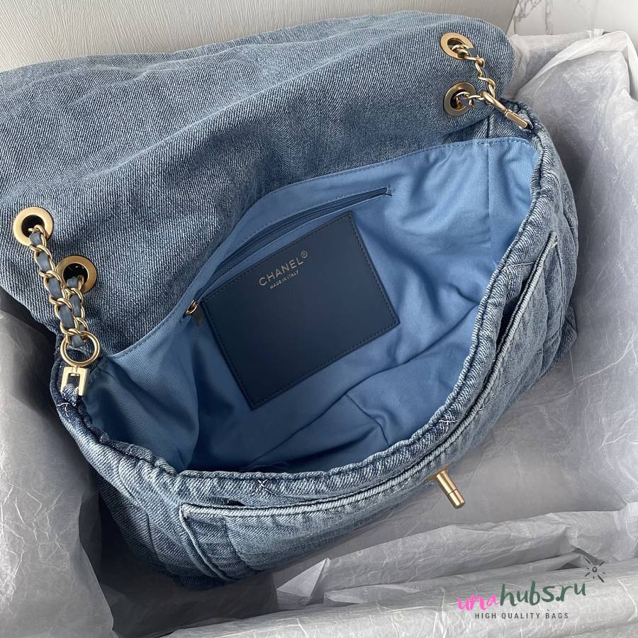 Chanel 25k Flap Bag Denim Blue Gold 35x24x10cm