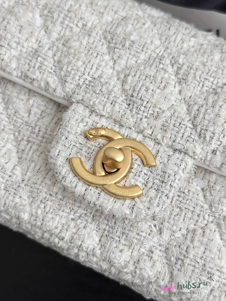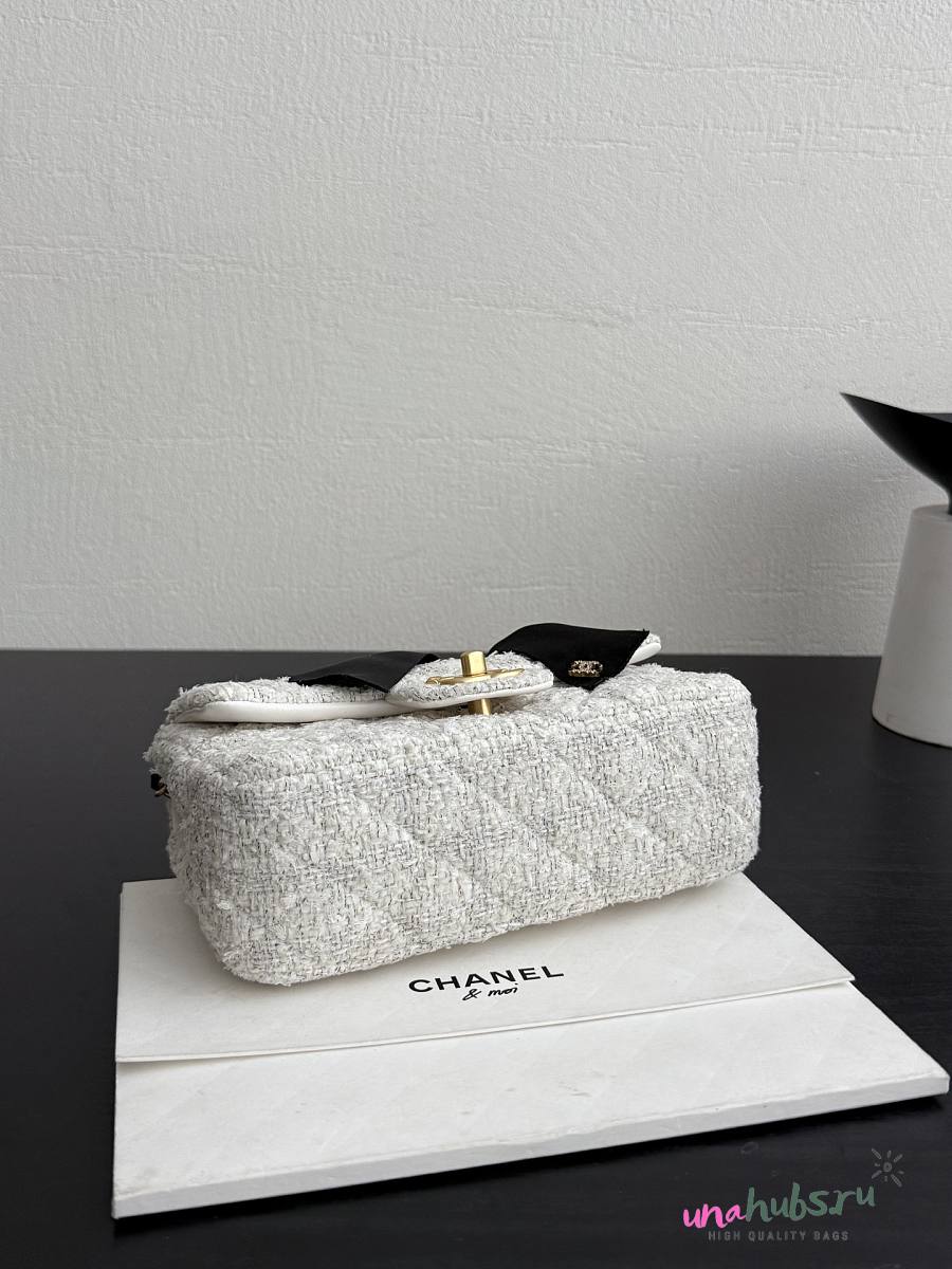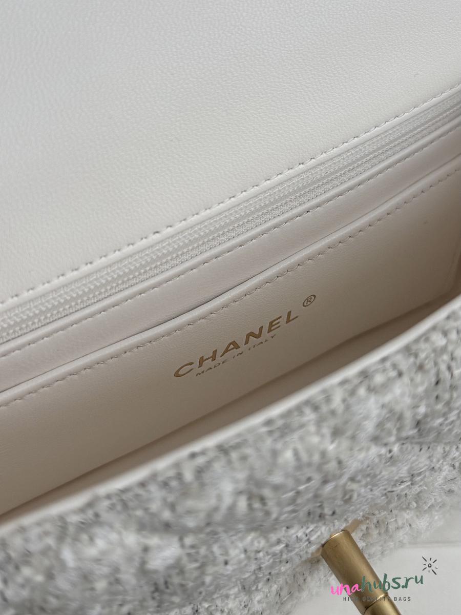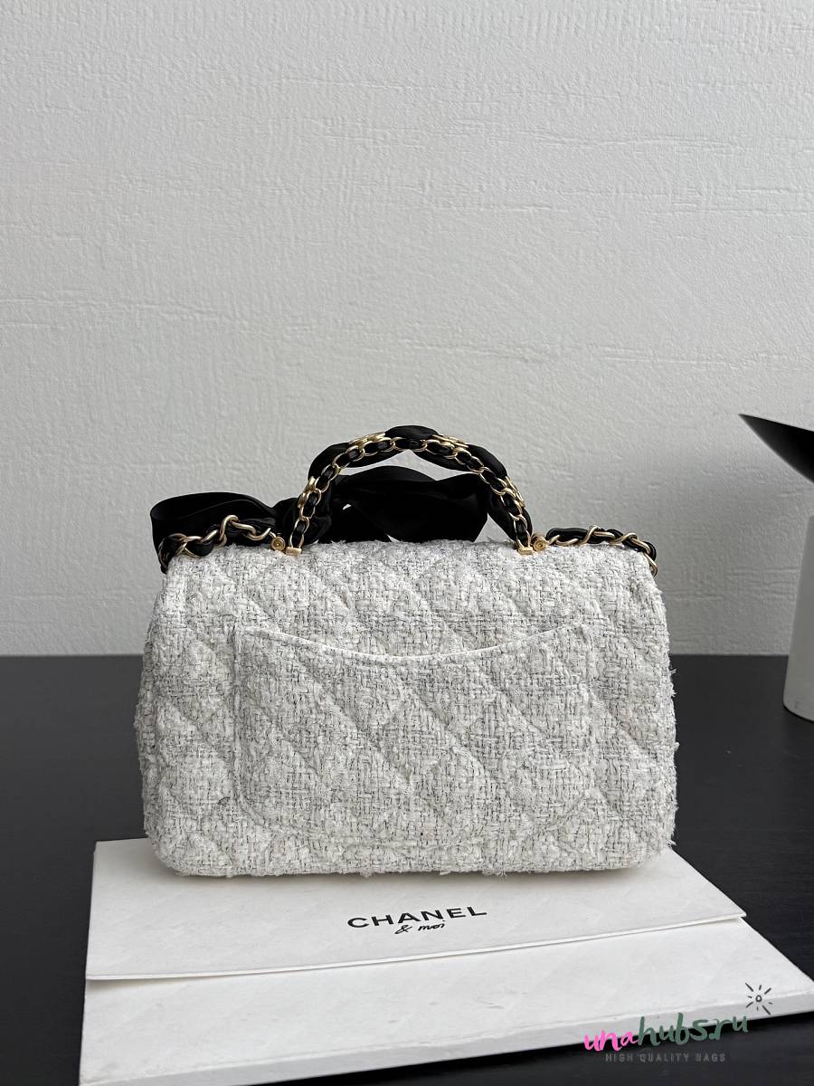 Chanel 25k Mini Flap Handle White Tweed 20x13x6cm