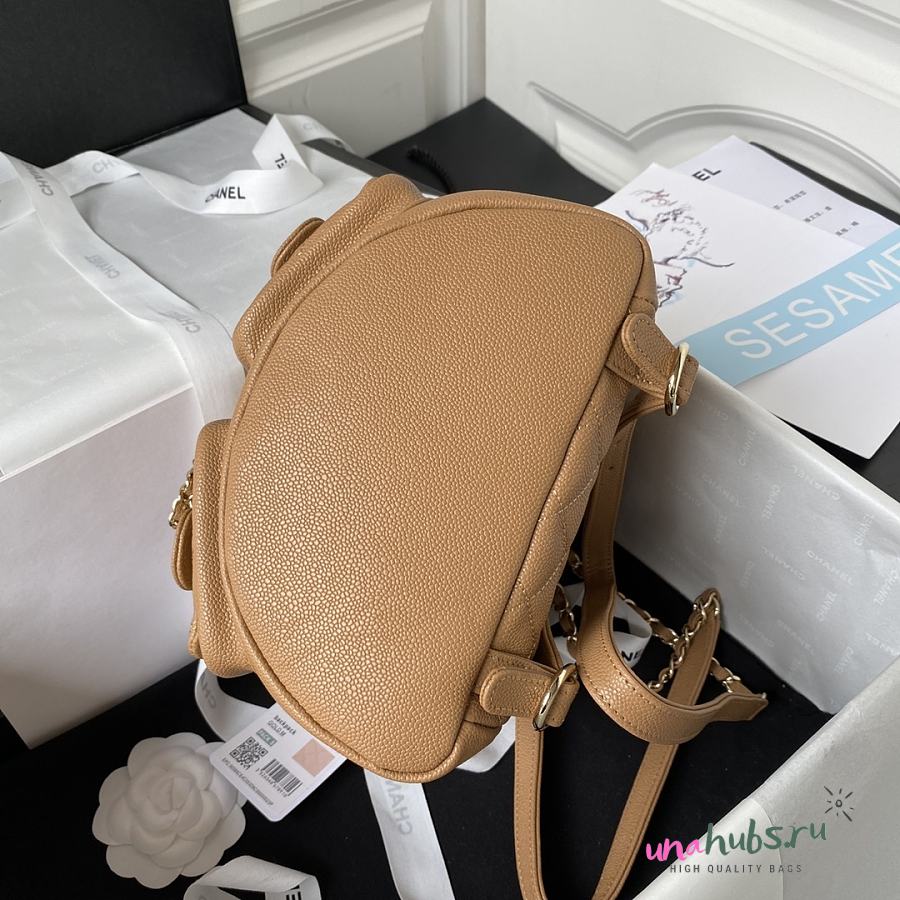 Chanel Backpack Caviar Tan Gold 21x20x12cm