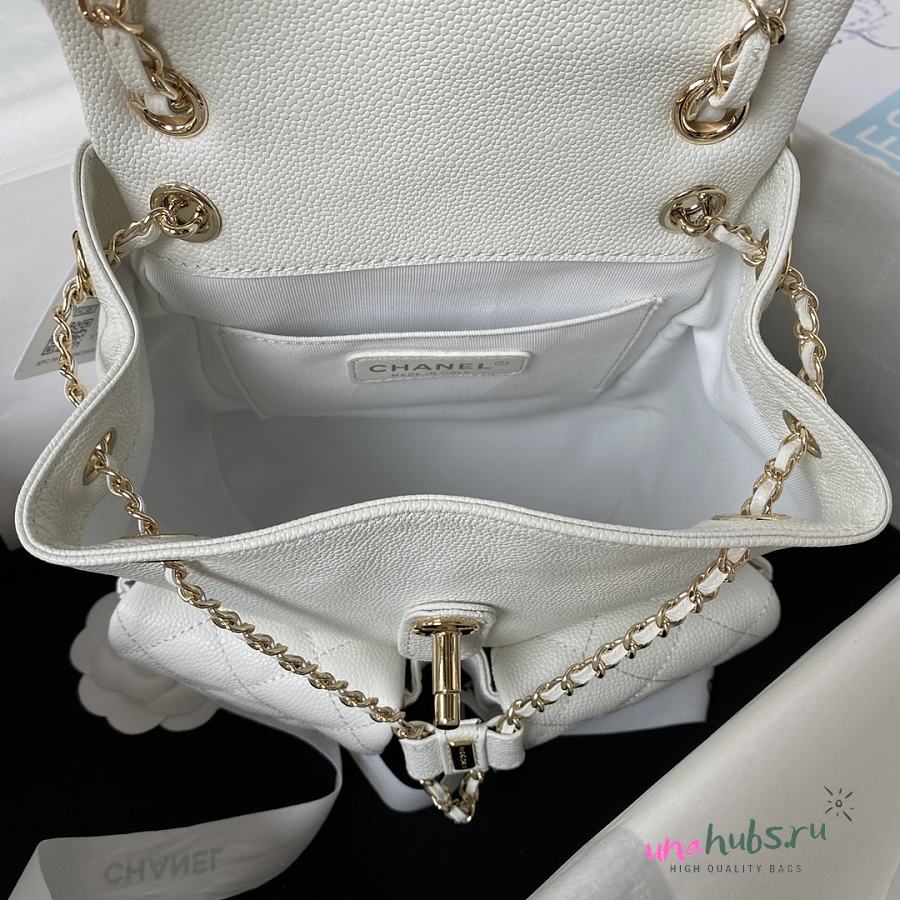 Chanel Backpack Caviar White Gold 21x20x12cm