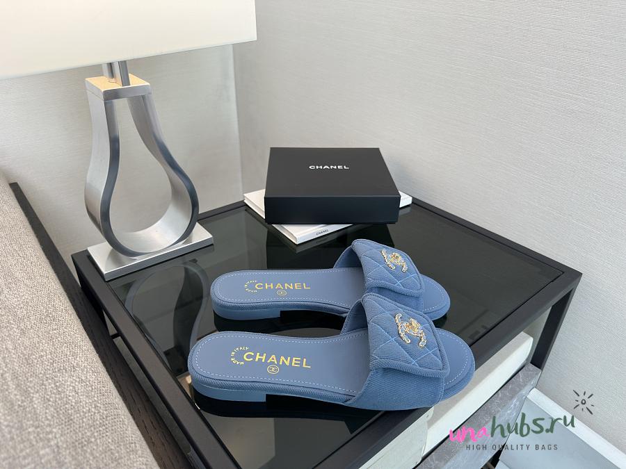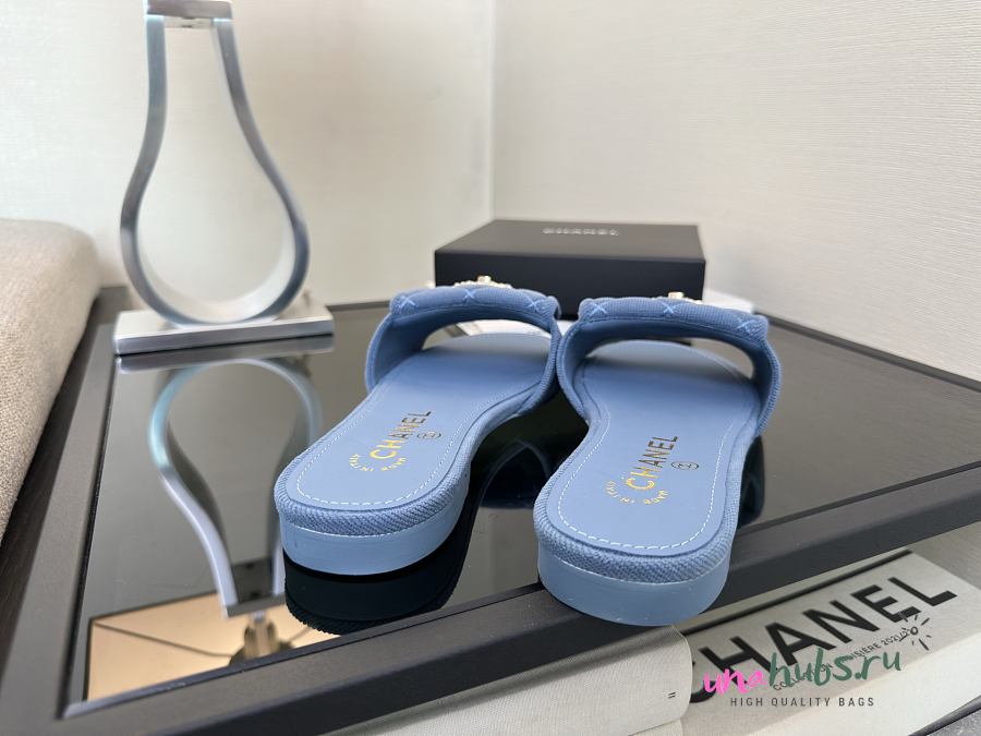 Chanel Blue Denim Slides