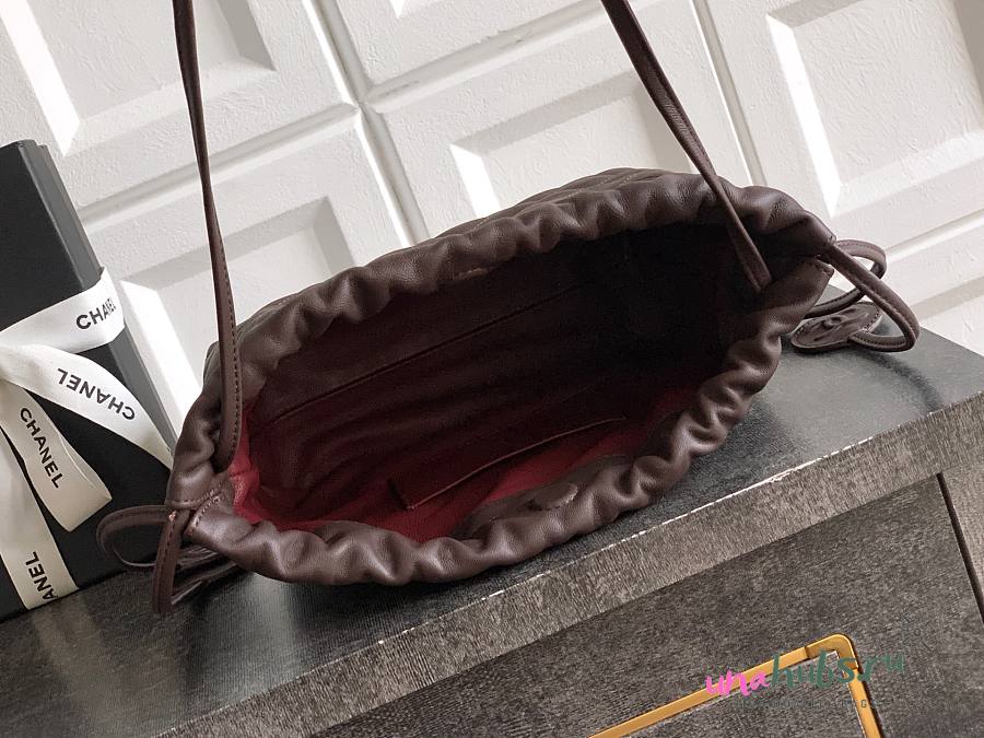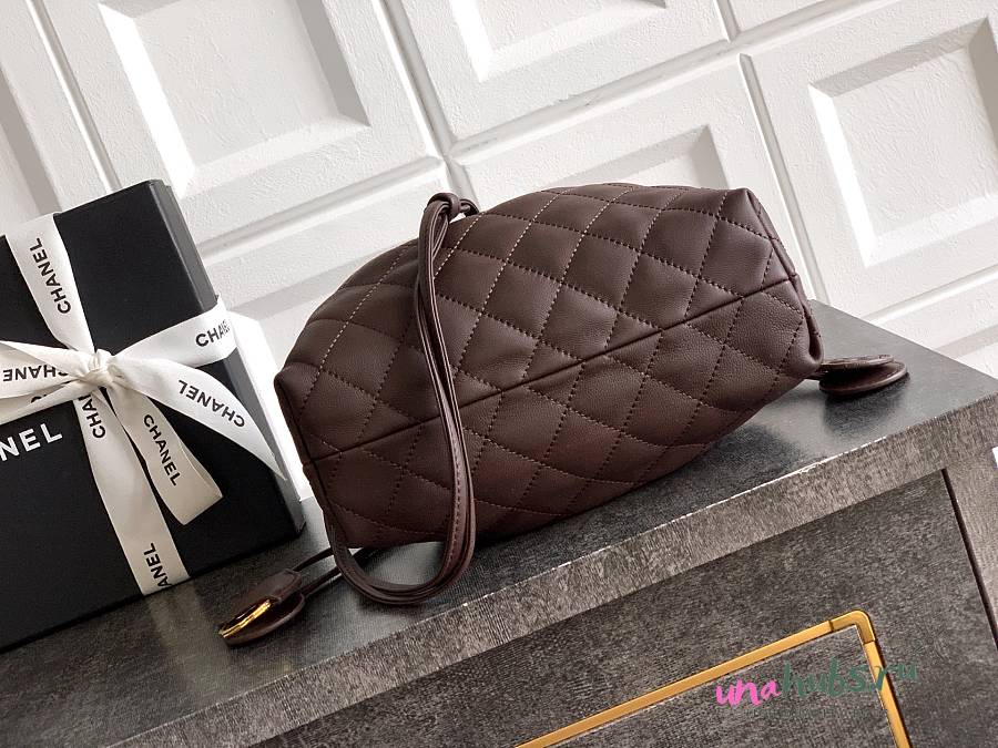 Chanel Clutch Strap Lambskin Dark Brown 18x12x5cm - Unahubs