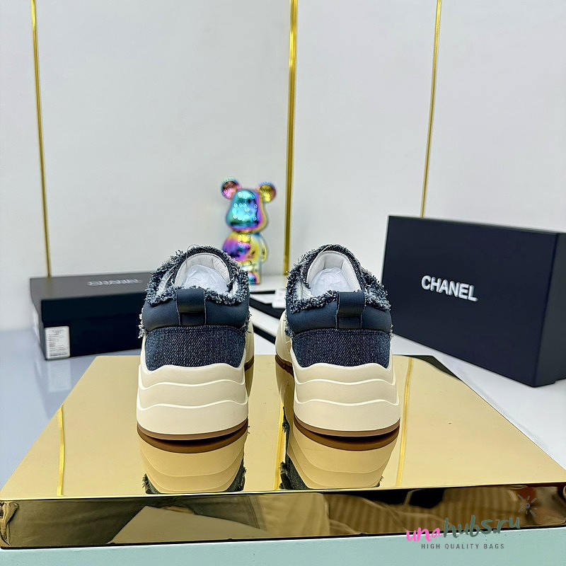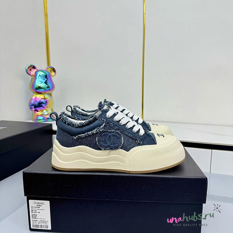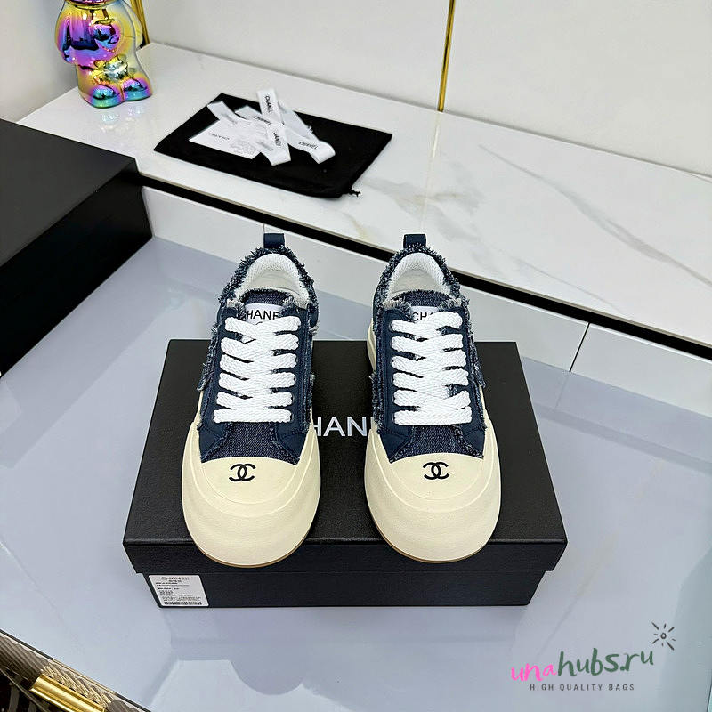 Chanel Dark Blue Denim Low-Top Sneakers