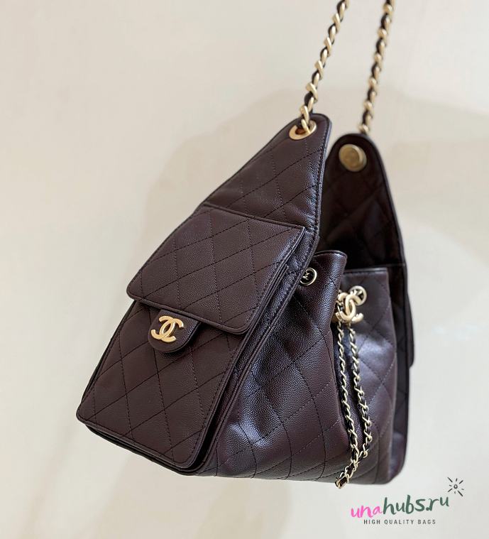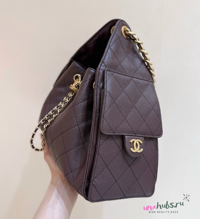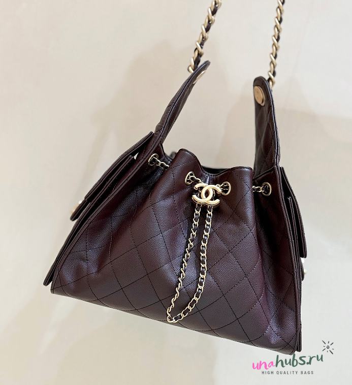 Chanel Drawstring Burgundy Bag Caviar Leather -30x26x14cm