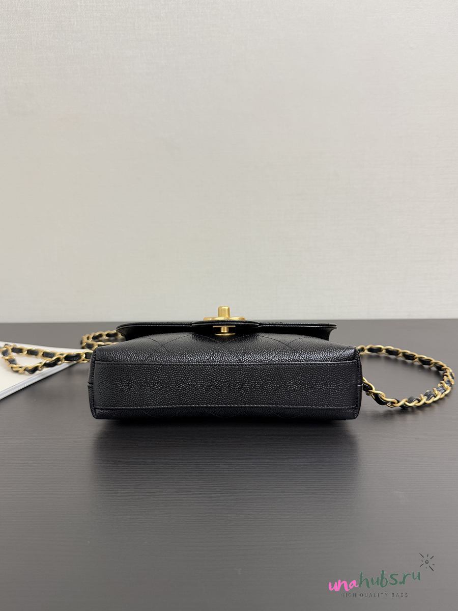Chanel phone holder gold metal black bag