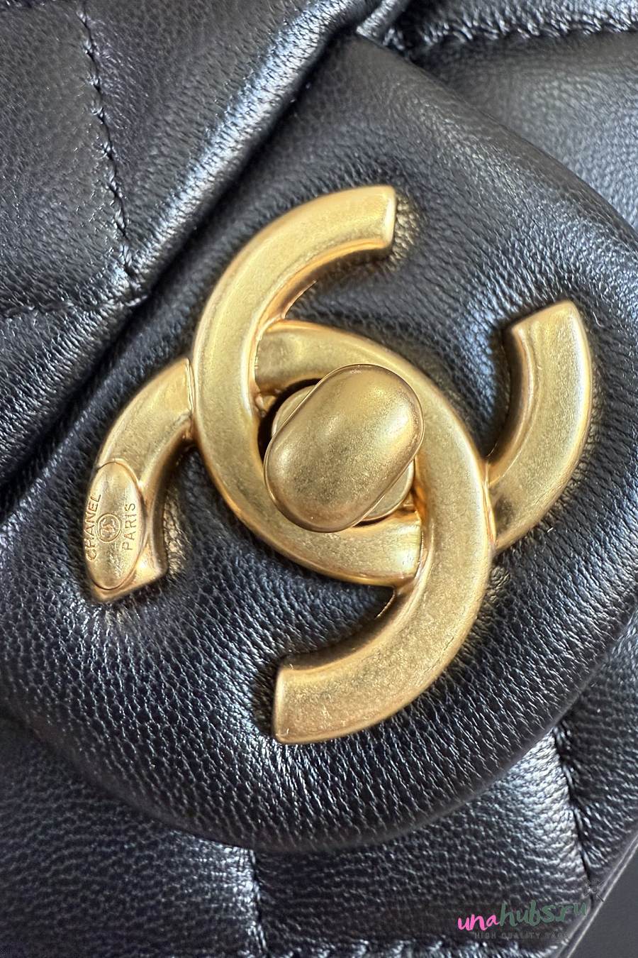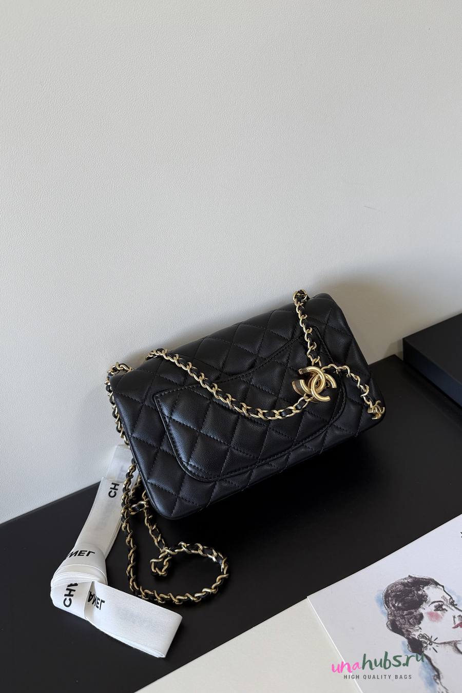 Chanel Flap Bag Black Lambskin Logo 20x13x7cm - Unahubs