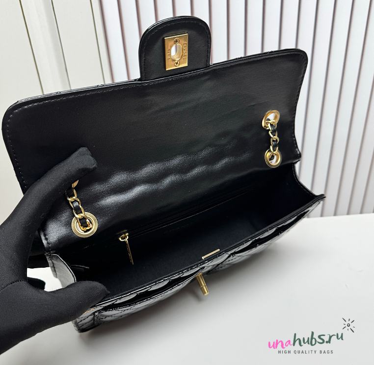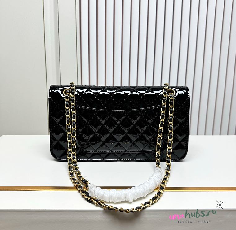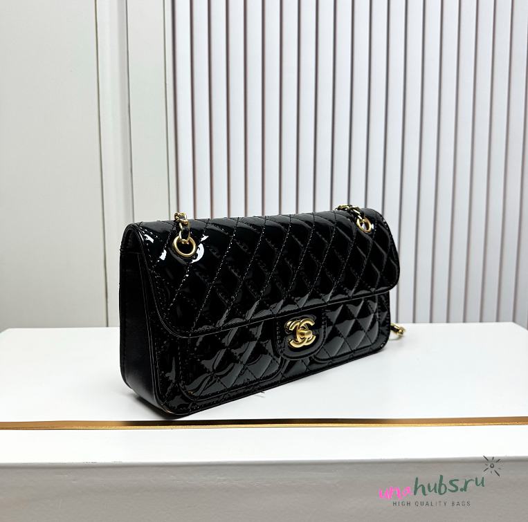 Chanel Flap Bag Black Patent Gold Hardware - 26x13x6cm