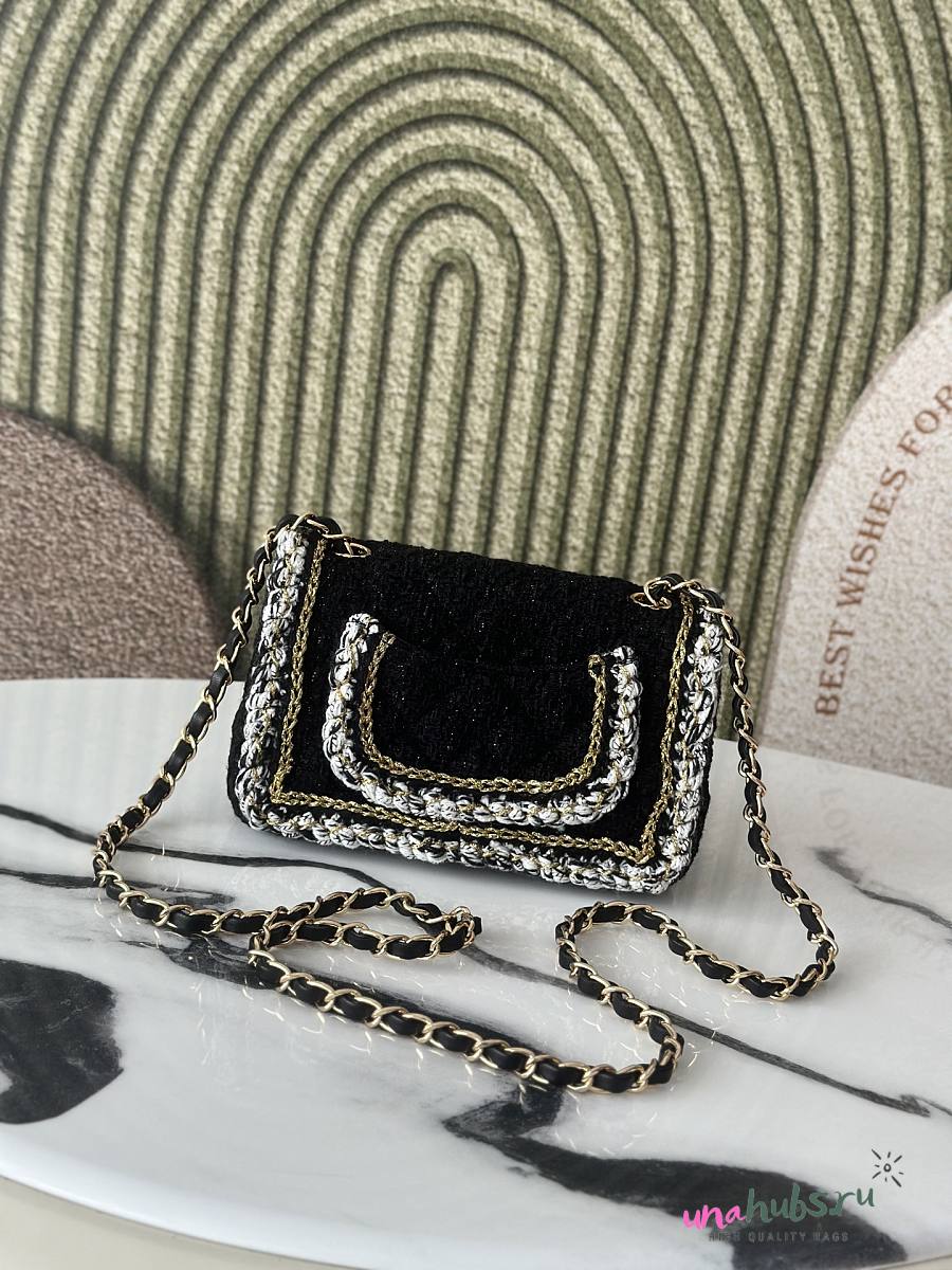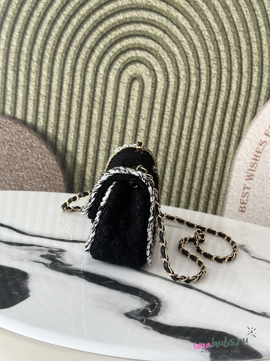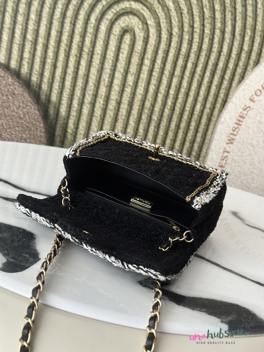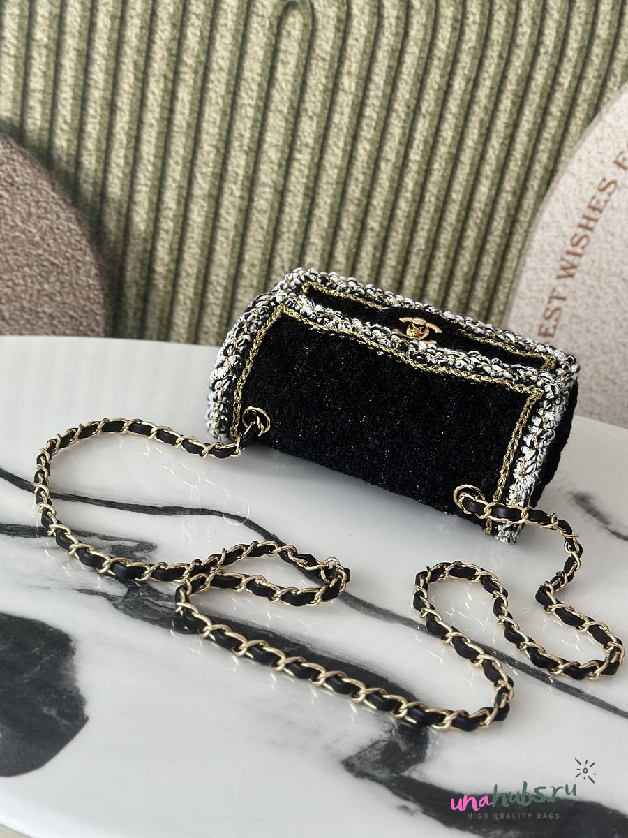 Chanel Flap Bag Black Tweed 20x13x7cm