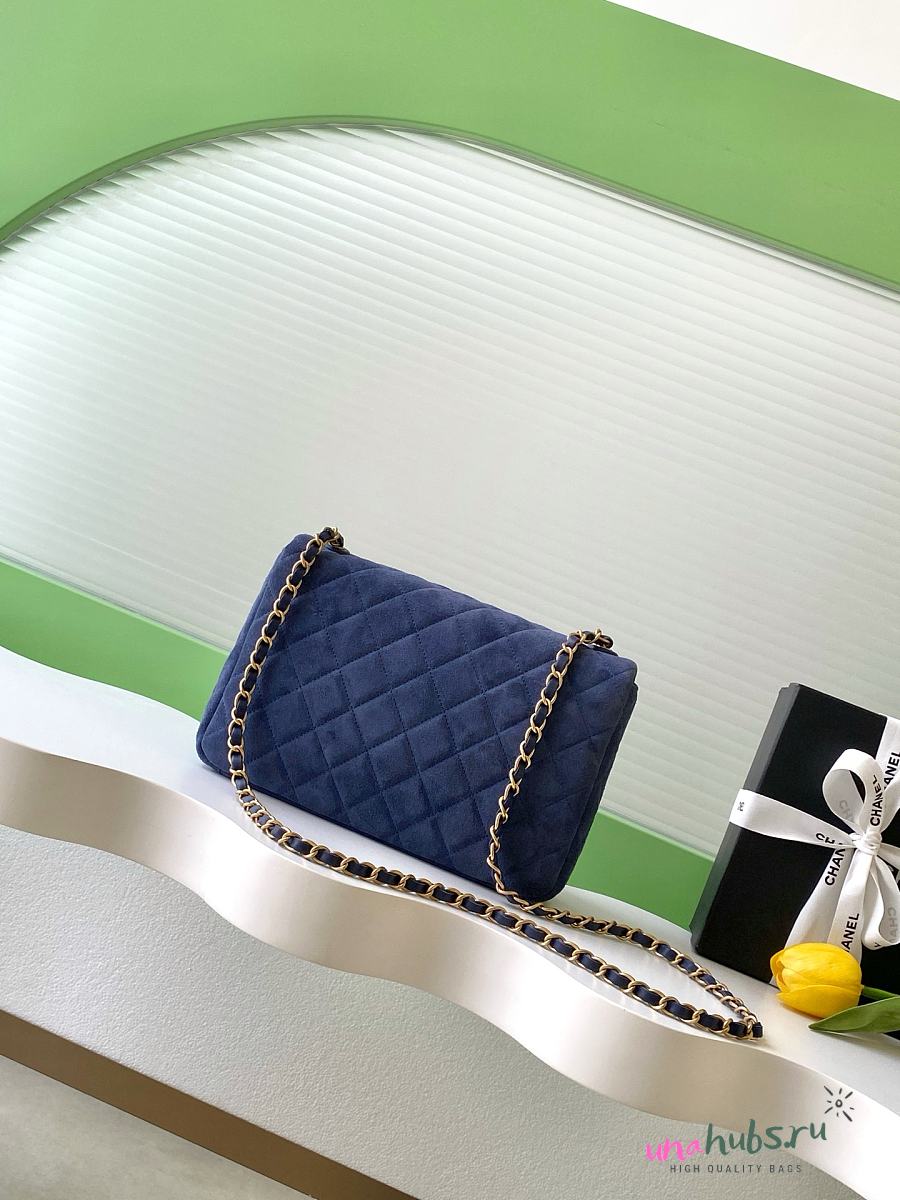 Chanel Flap Bag Blue Suede 26x18x7cm
