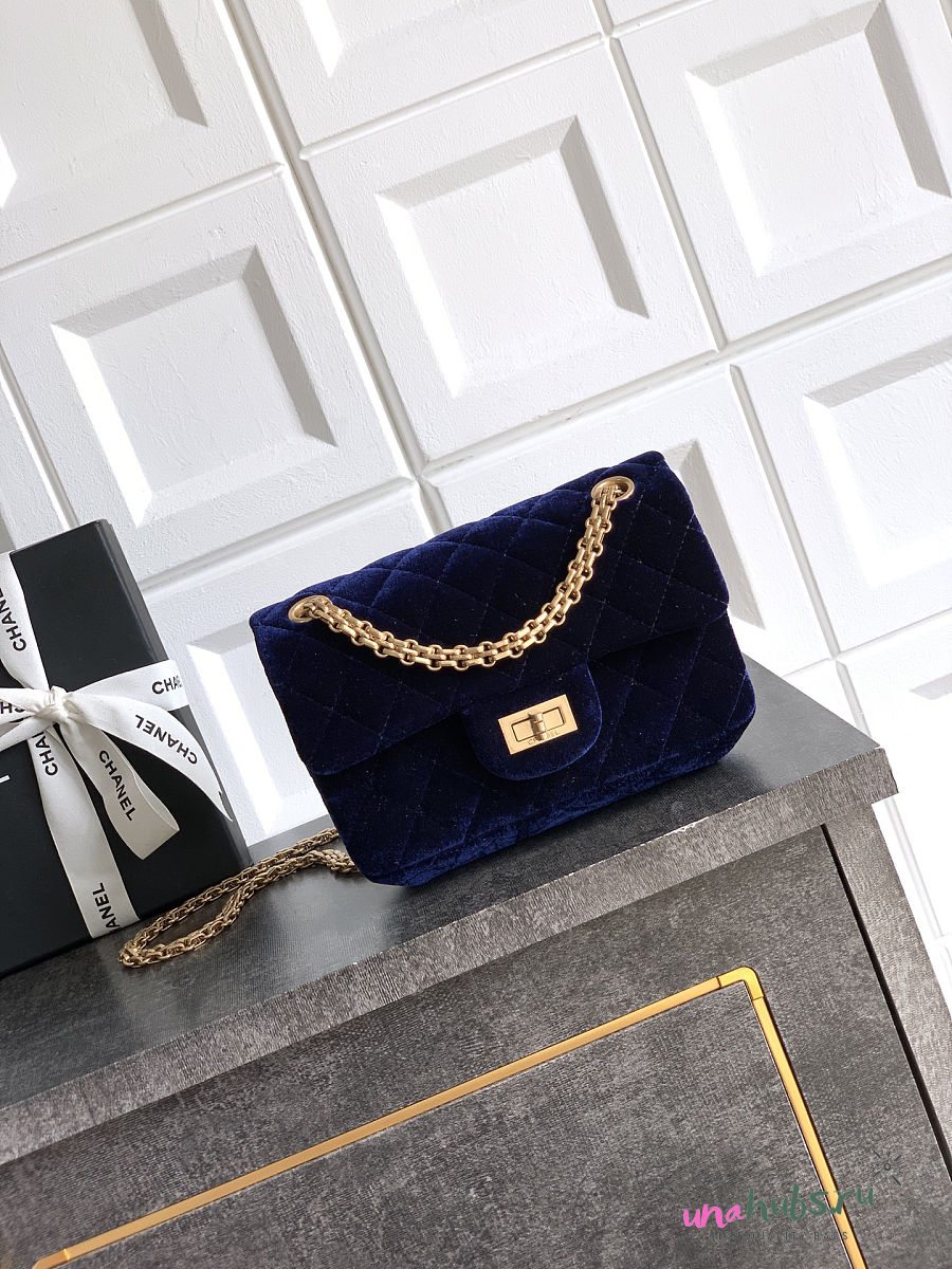 Chanel Flap bag Blue Velvet 20x15.5x6cm