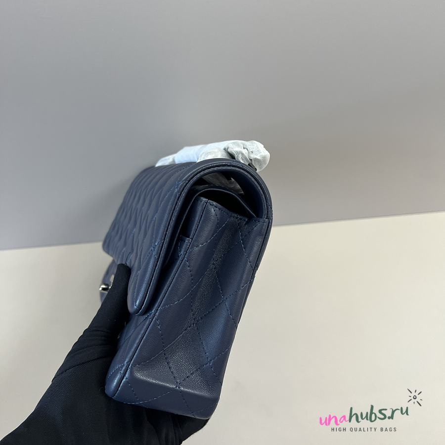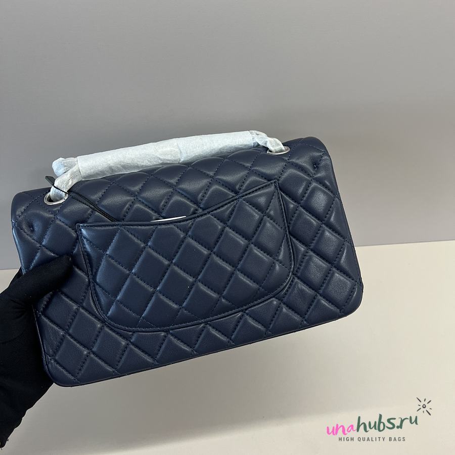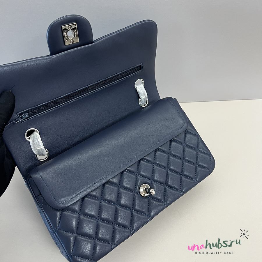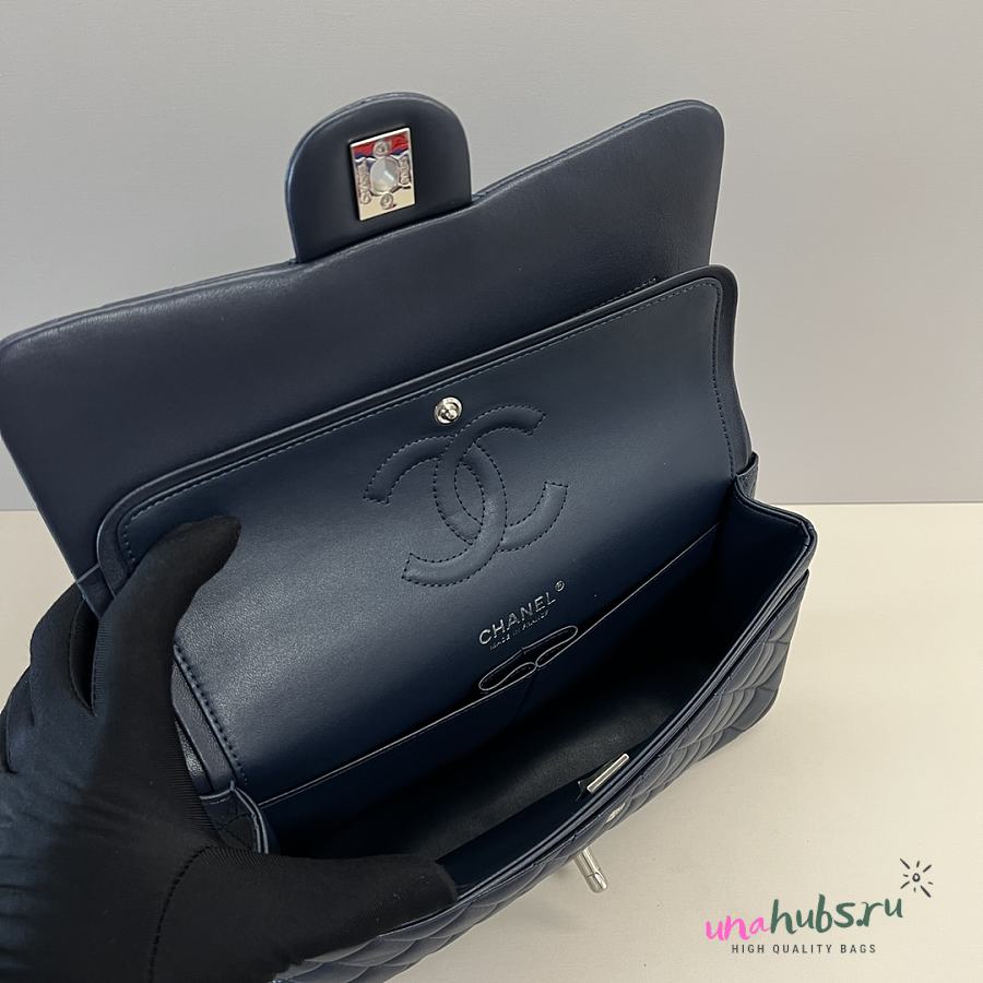 Chanel Flap Bag Navy Blue Silver Lambskin 25cm