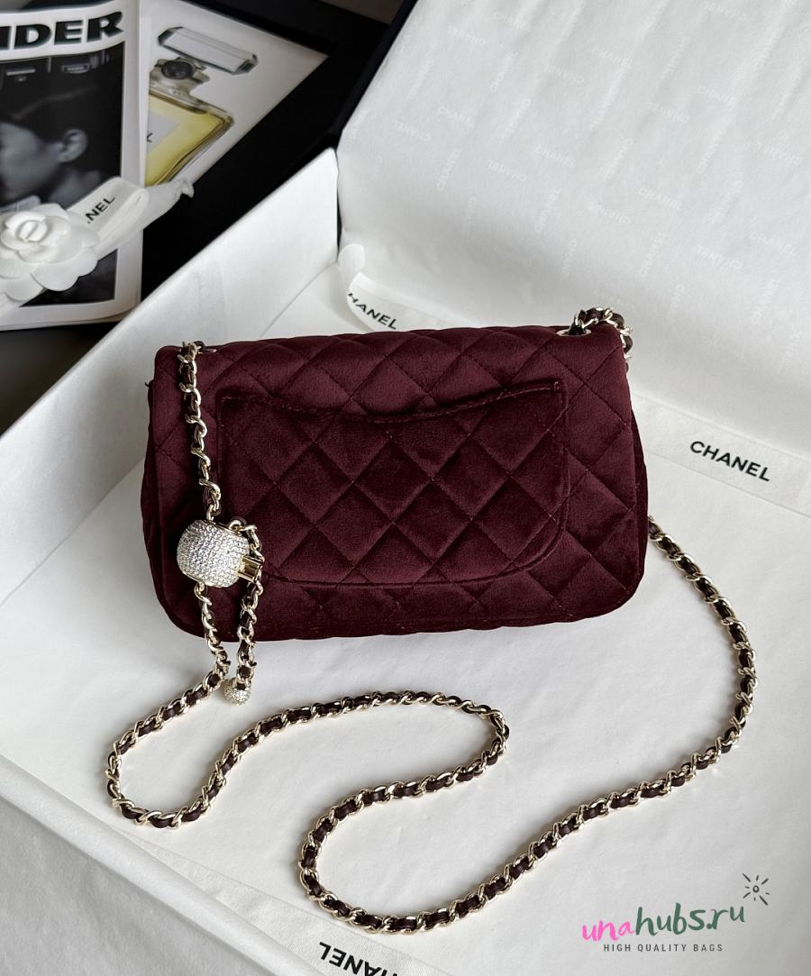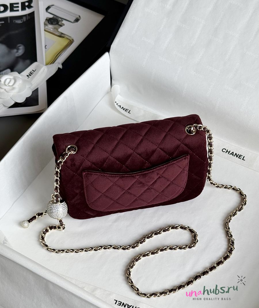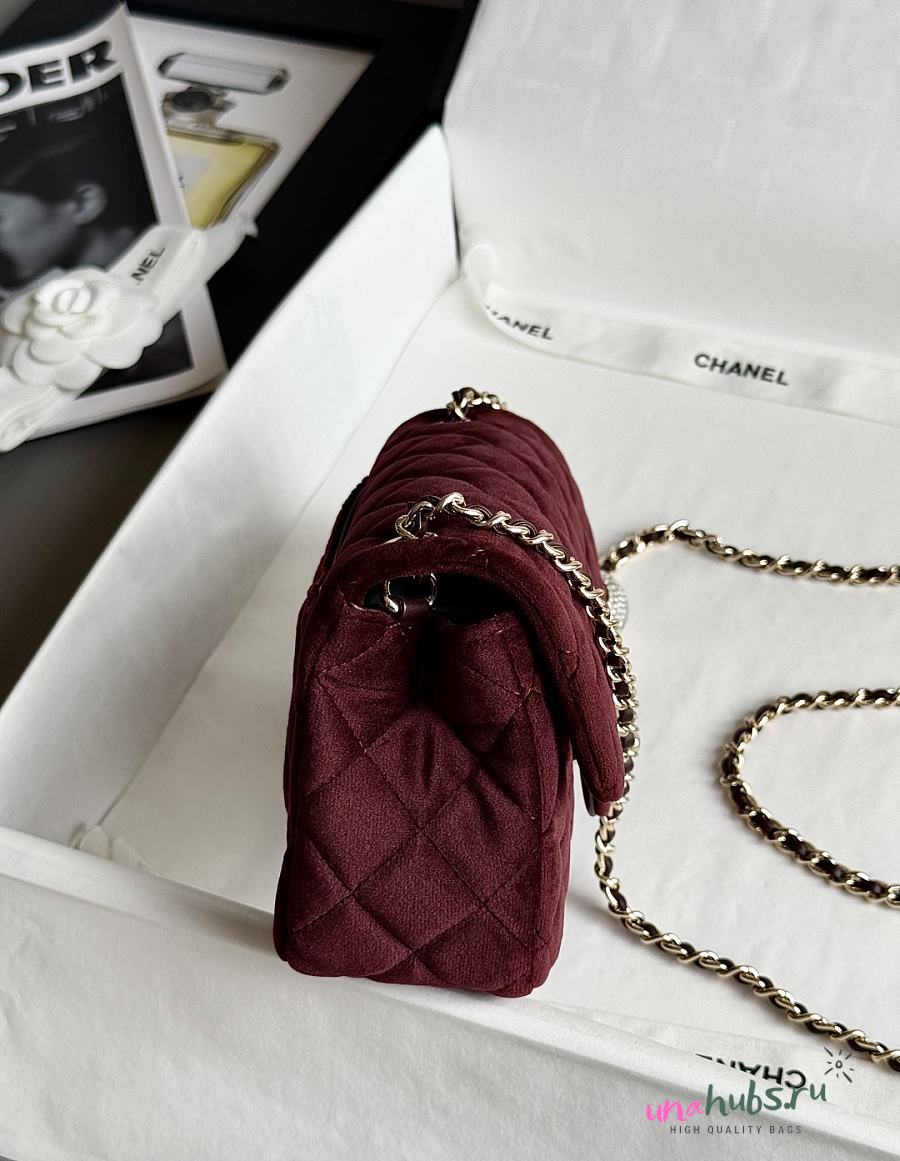 Chanel Flap Bag Red Wine Velvet 20x13x7cm