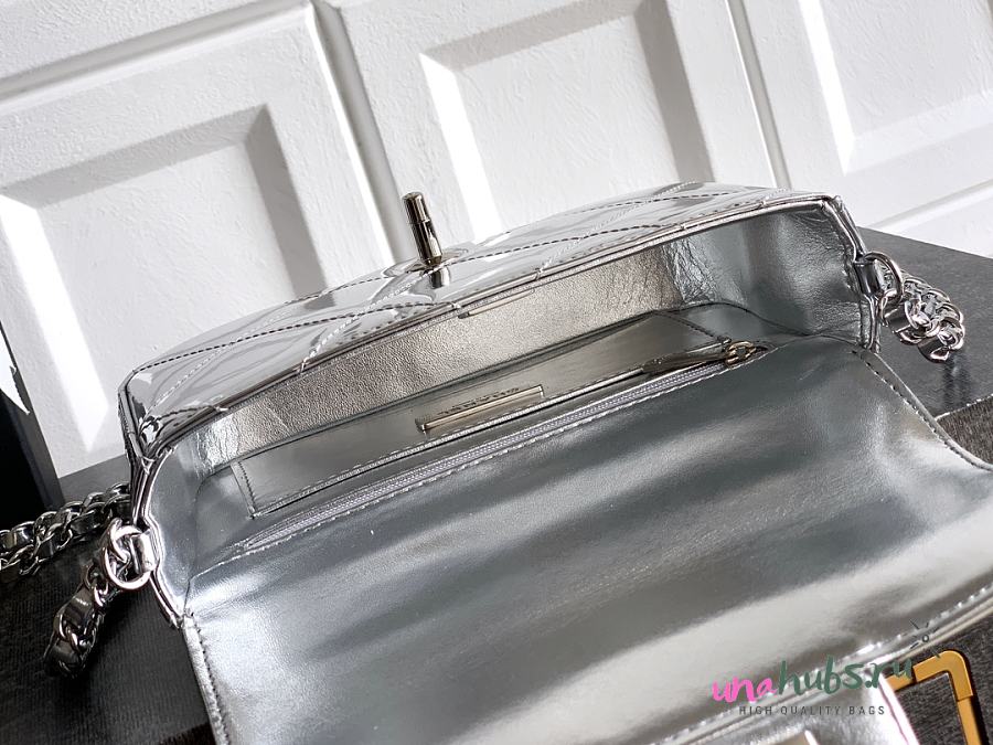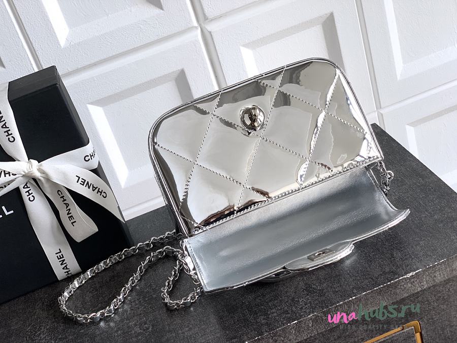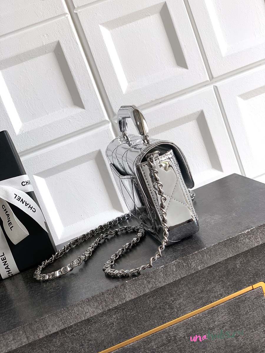 Chanel Flap Bag Top Handle Silver Patent 18x4.5x13cm