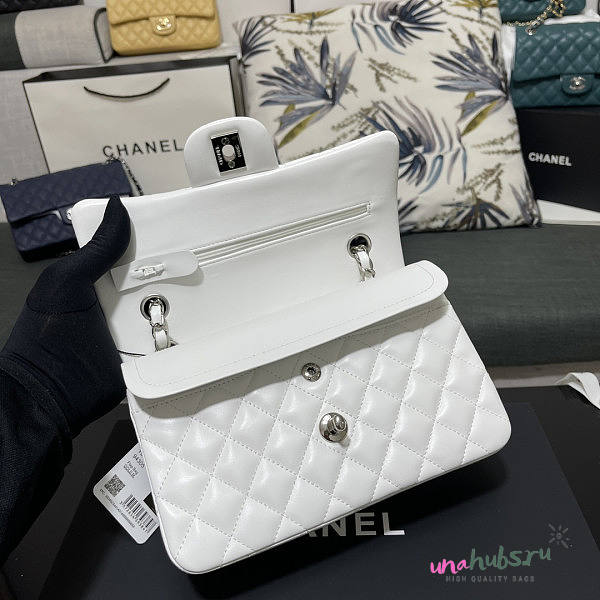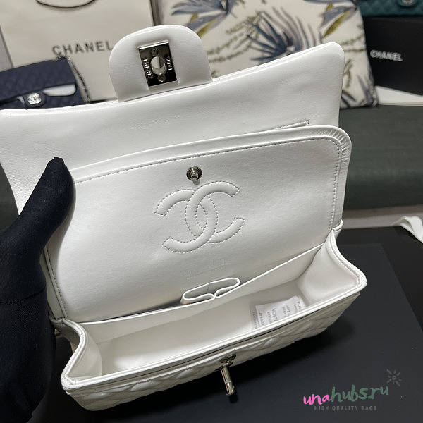 Chanel Flap Bag White Lambskin Silver 23cm - Unahubs