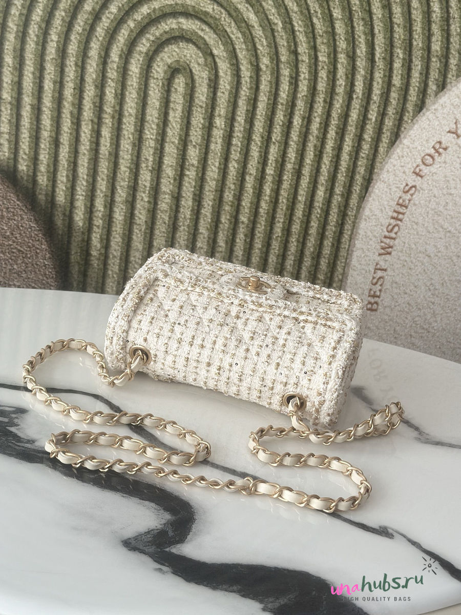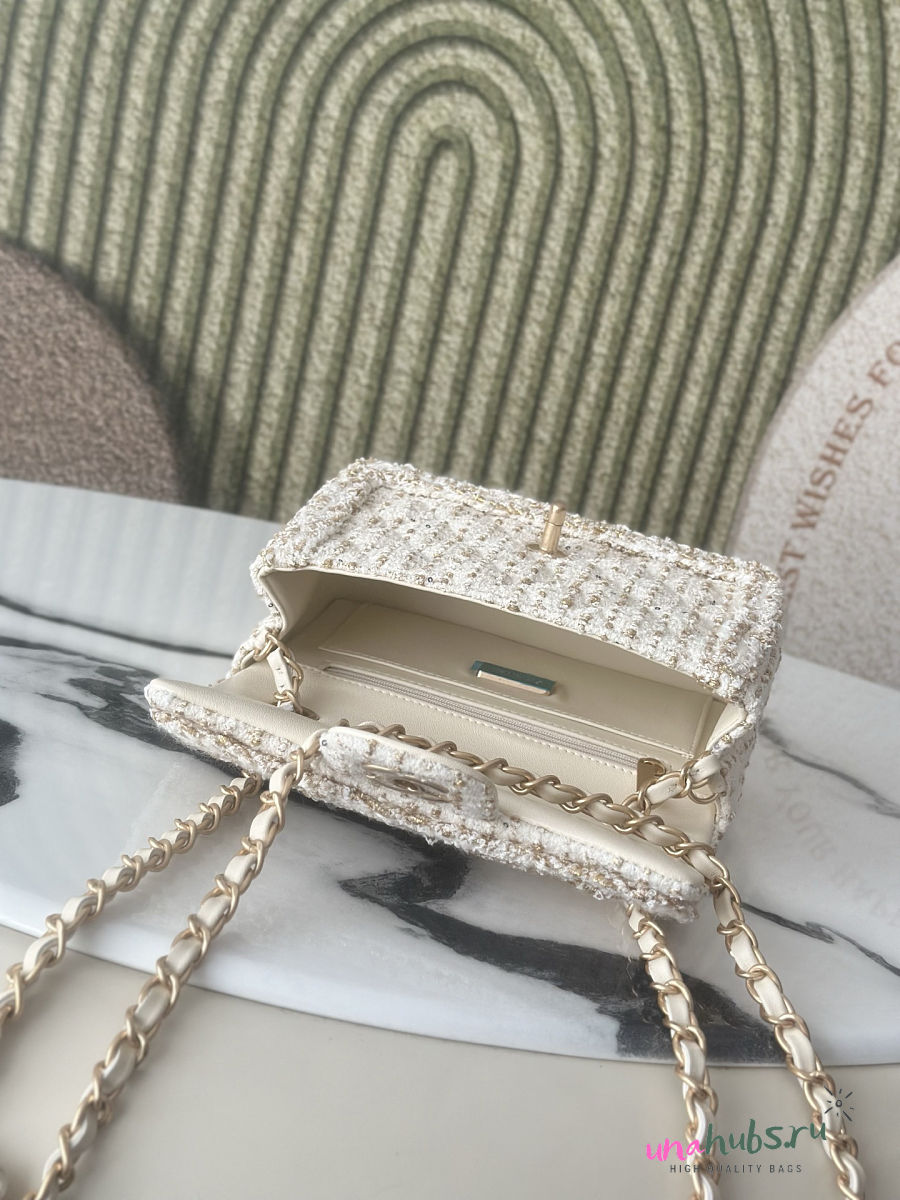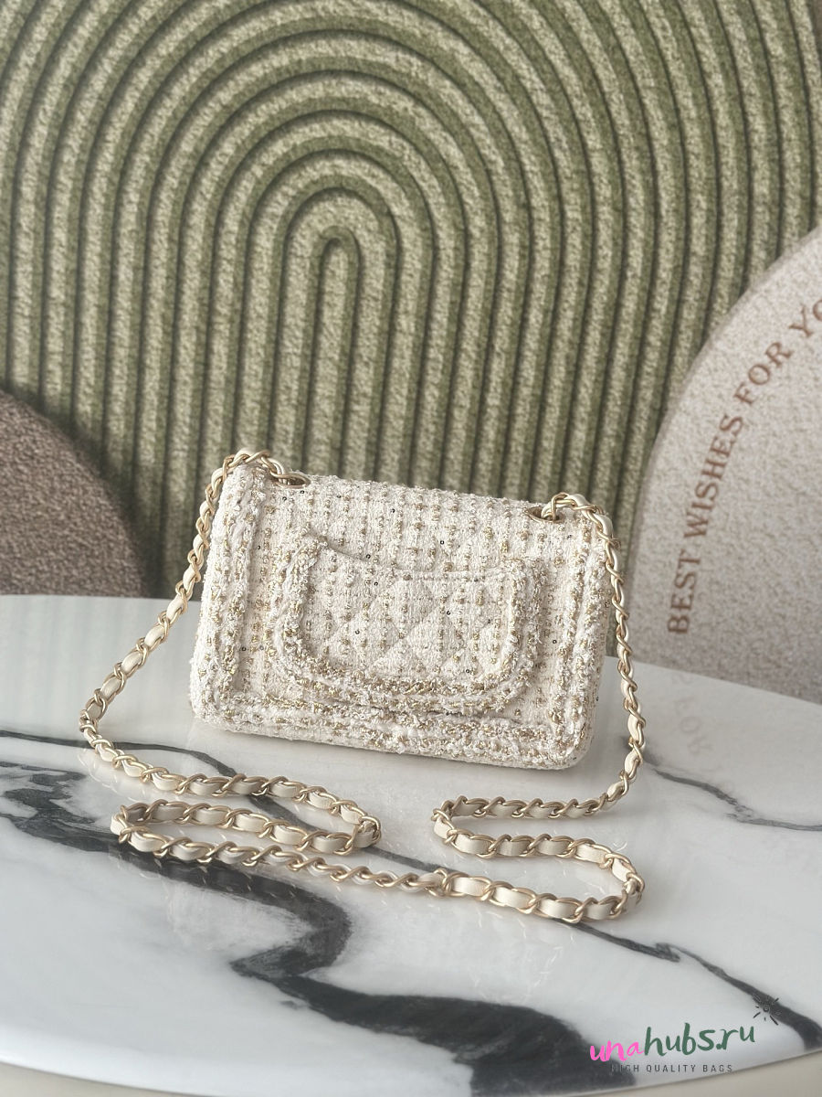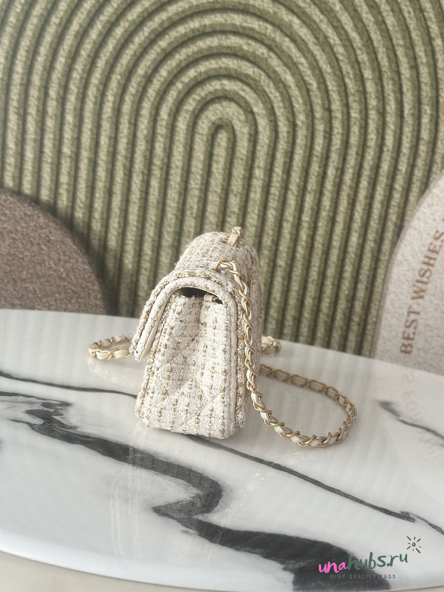 Chanel Flap Bag White Tweed 20x13x7cm