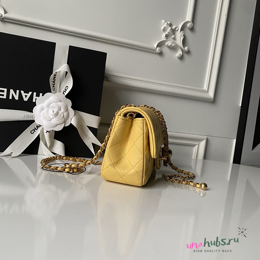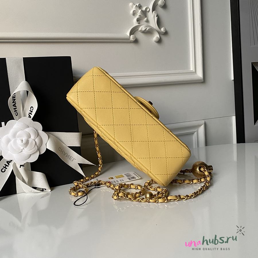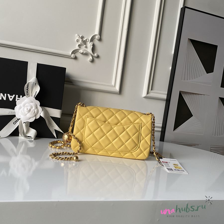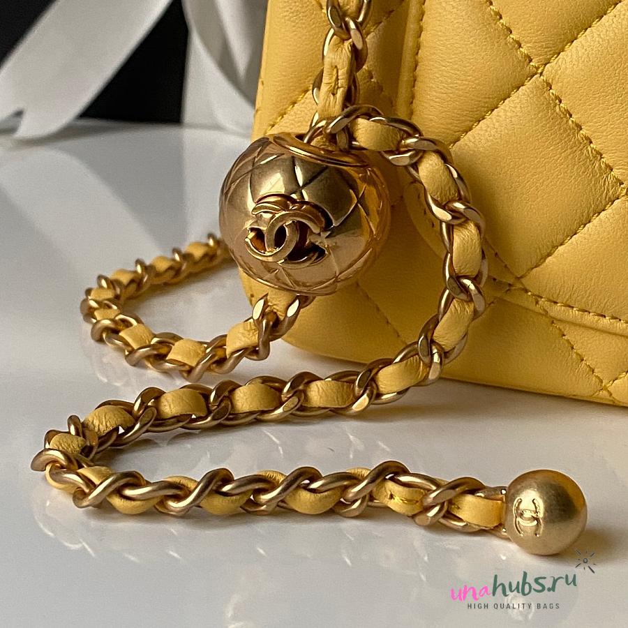 Chanel Flap Bag Yellow Lambskin Bell 20cm