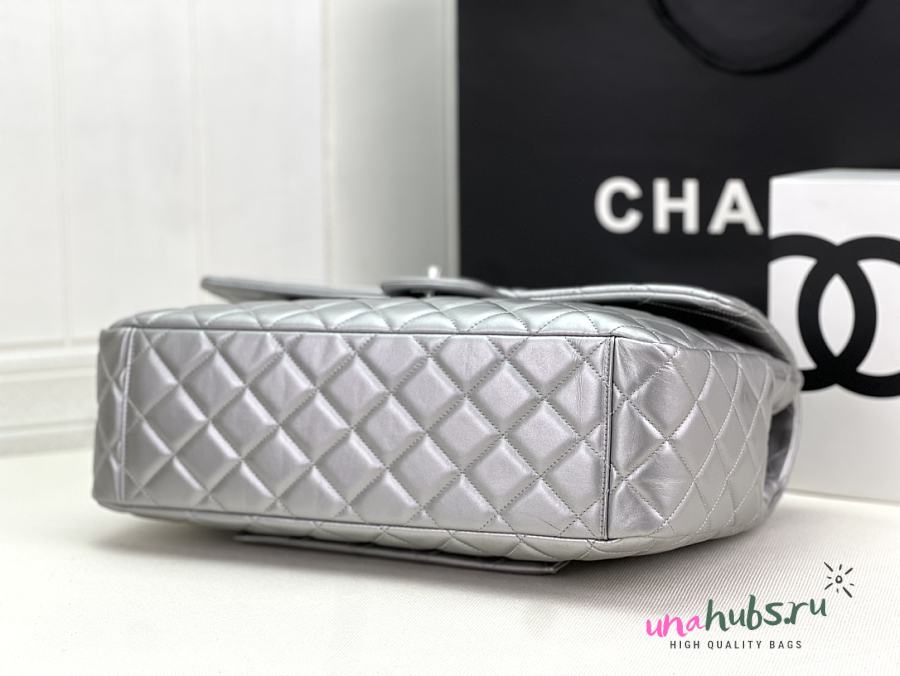 Chanel Flap Travel Bag Silver Lambskin 40x26x12cm