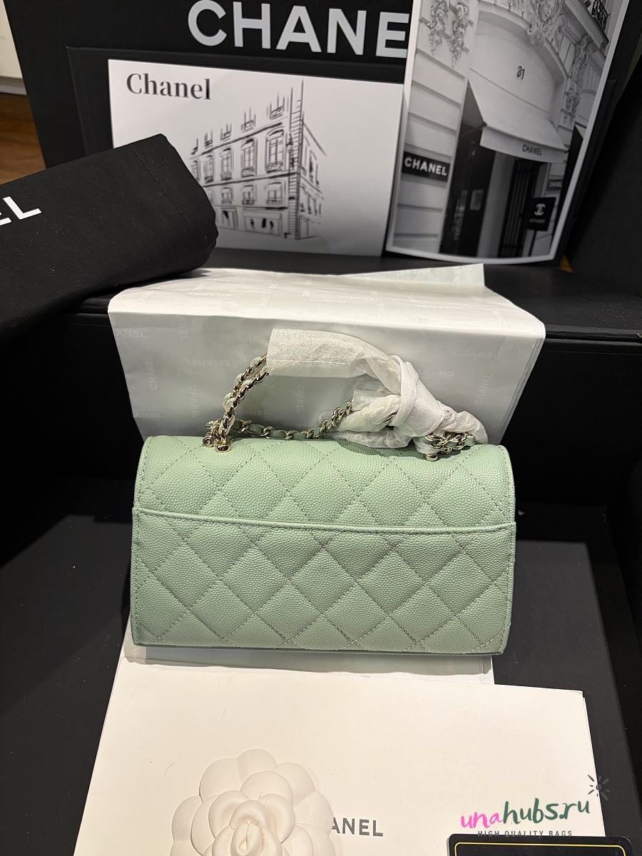 Chanel grained calfskin top handle flap bag green 20cm