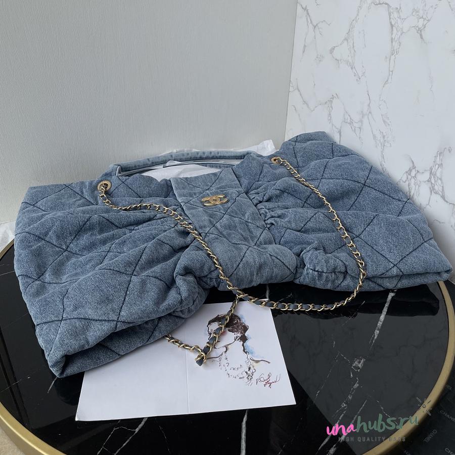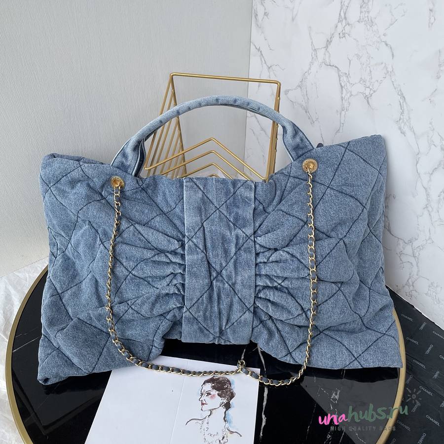 Fendi Baguette Pouch FF Jacquard Chain Clutch Blue Denim 20x13x3cm