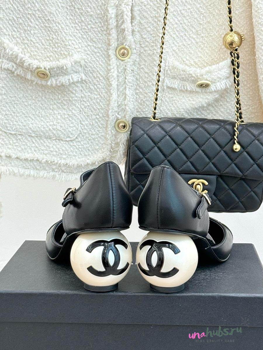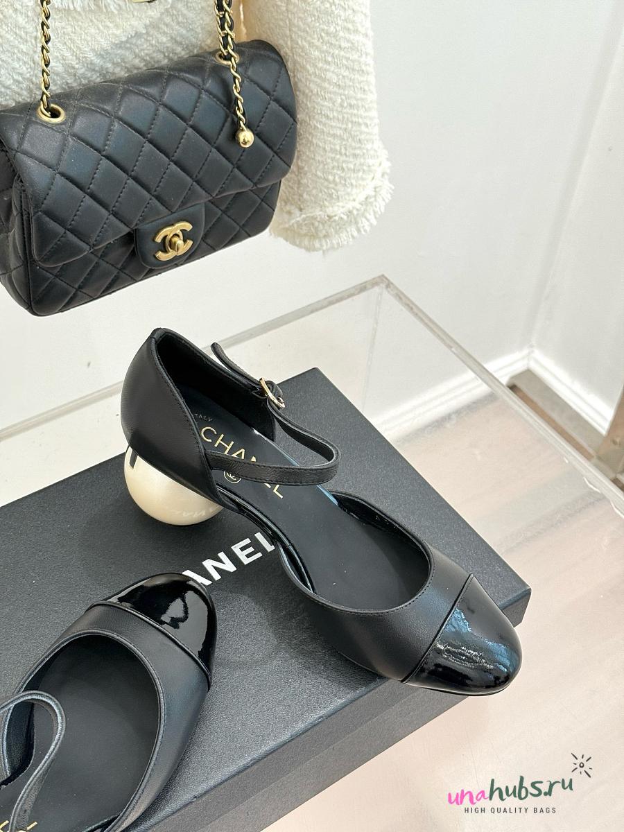 Chanel Mary Janes Lambskin Patent Calfskin Black 8.5cm