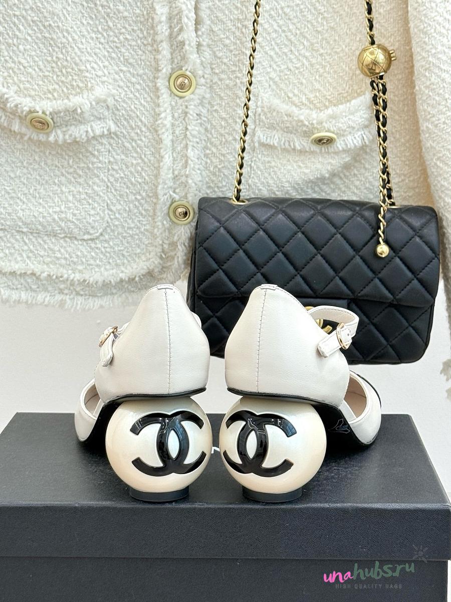 Chanel Mary Janes Lambskin Patent Calfskin White 8.5cm