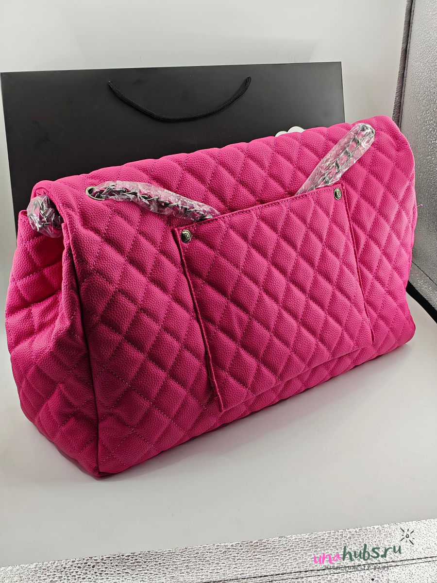 Chanel Maxi Flap Bag XXL Caviar Pink Silver 46x27x13cm