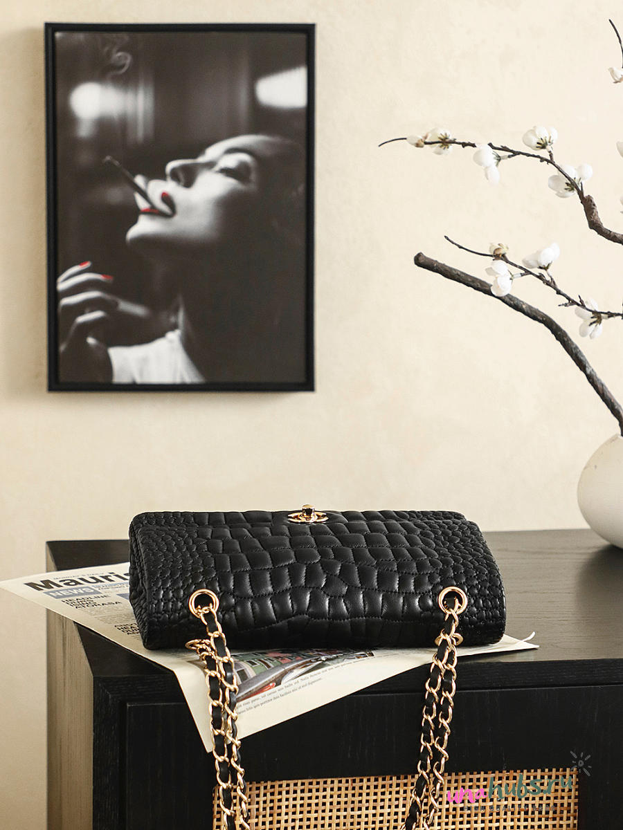 Chanel Medium Flap Bag black gold 25cm - Unahubs