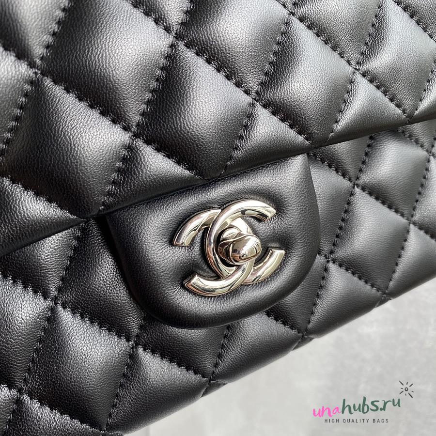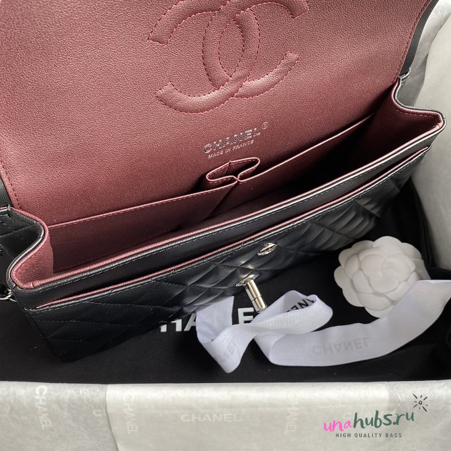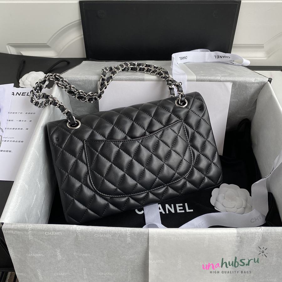 Chanel Medium Flap Bag Black Lambskin Silver 25cm