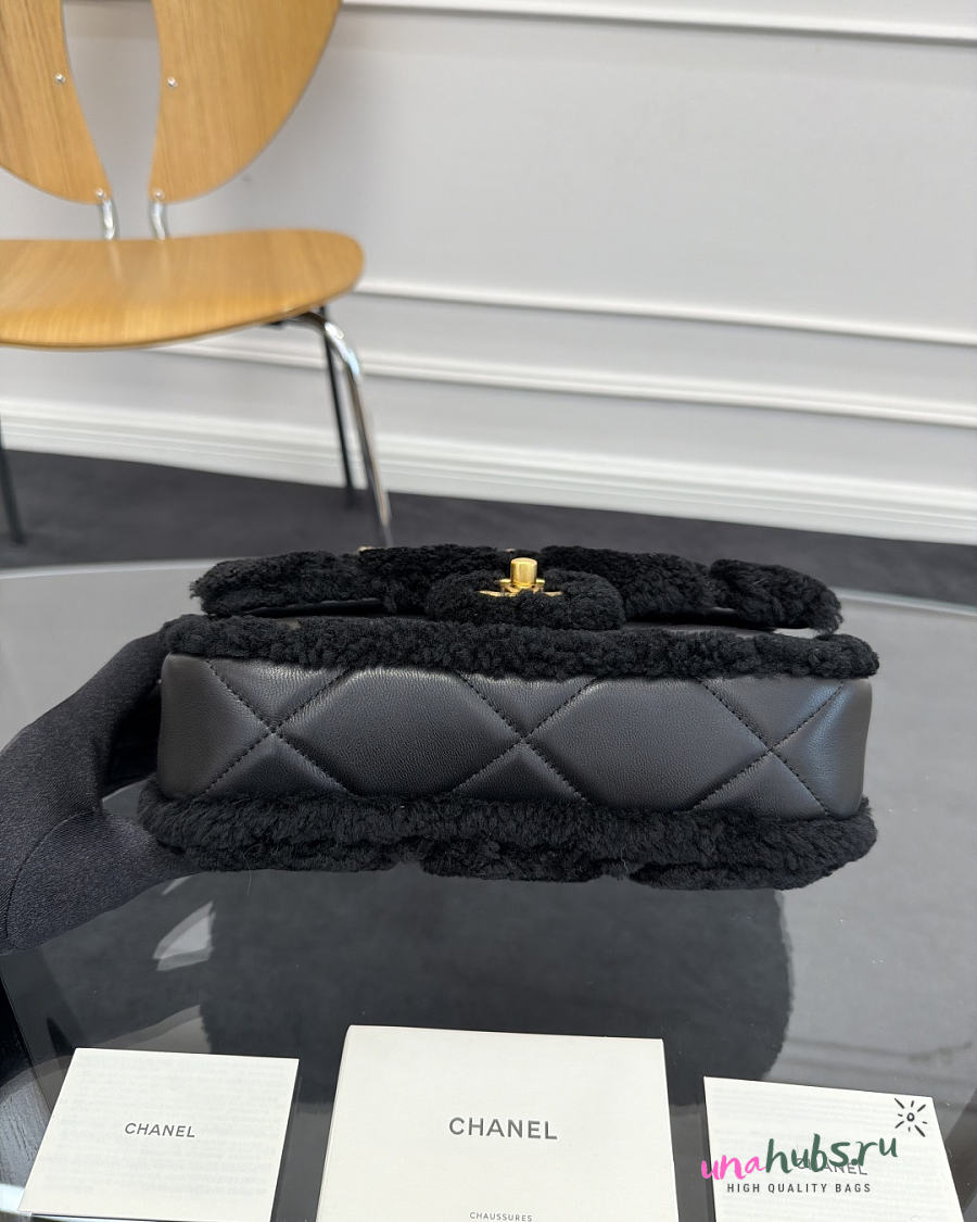 Chanel Medium flap Bag Fleece & Gold Black - 24x16x8cm